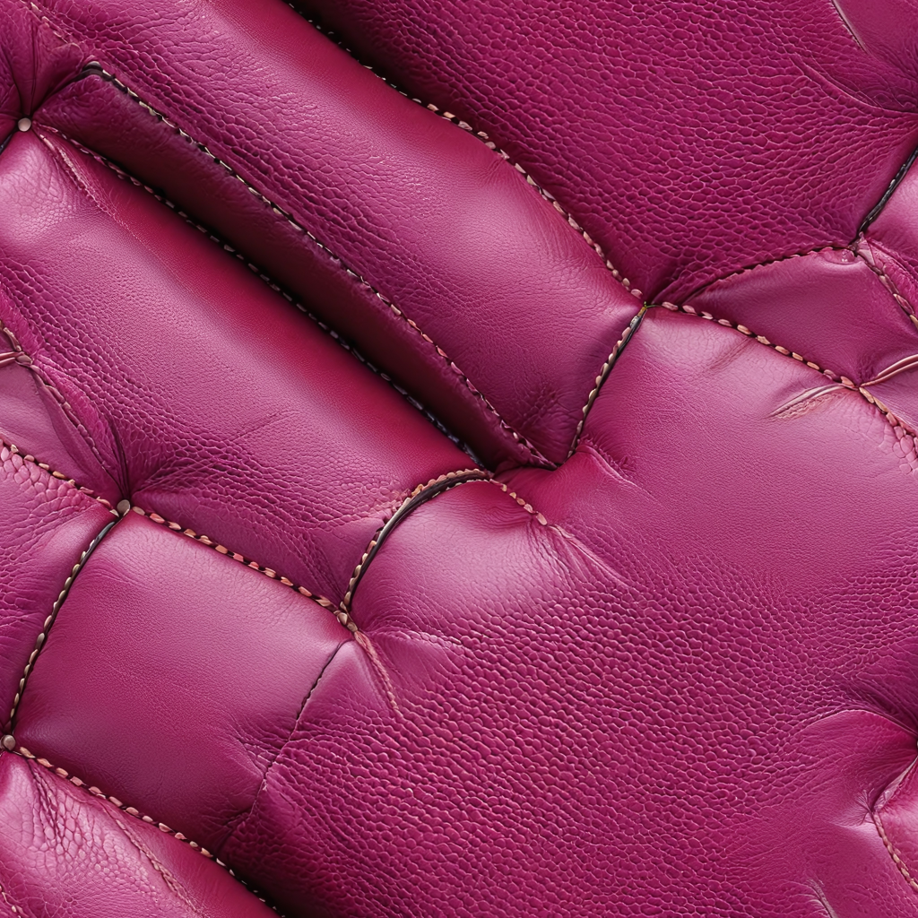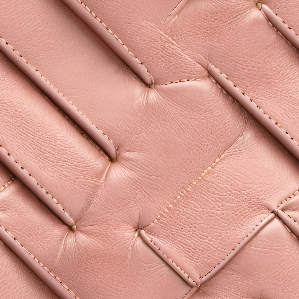Seamless 3D Quilted Pink Leather Upholstery PBR Texture with Soft Grain and Stitched Panels