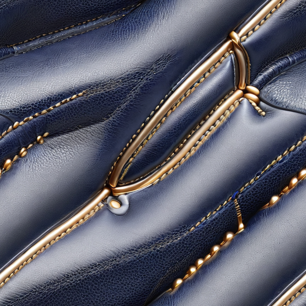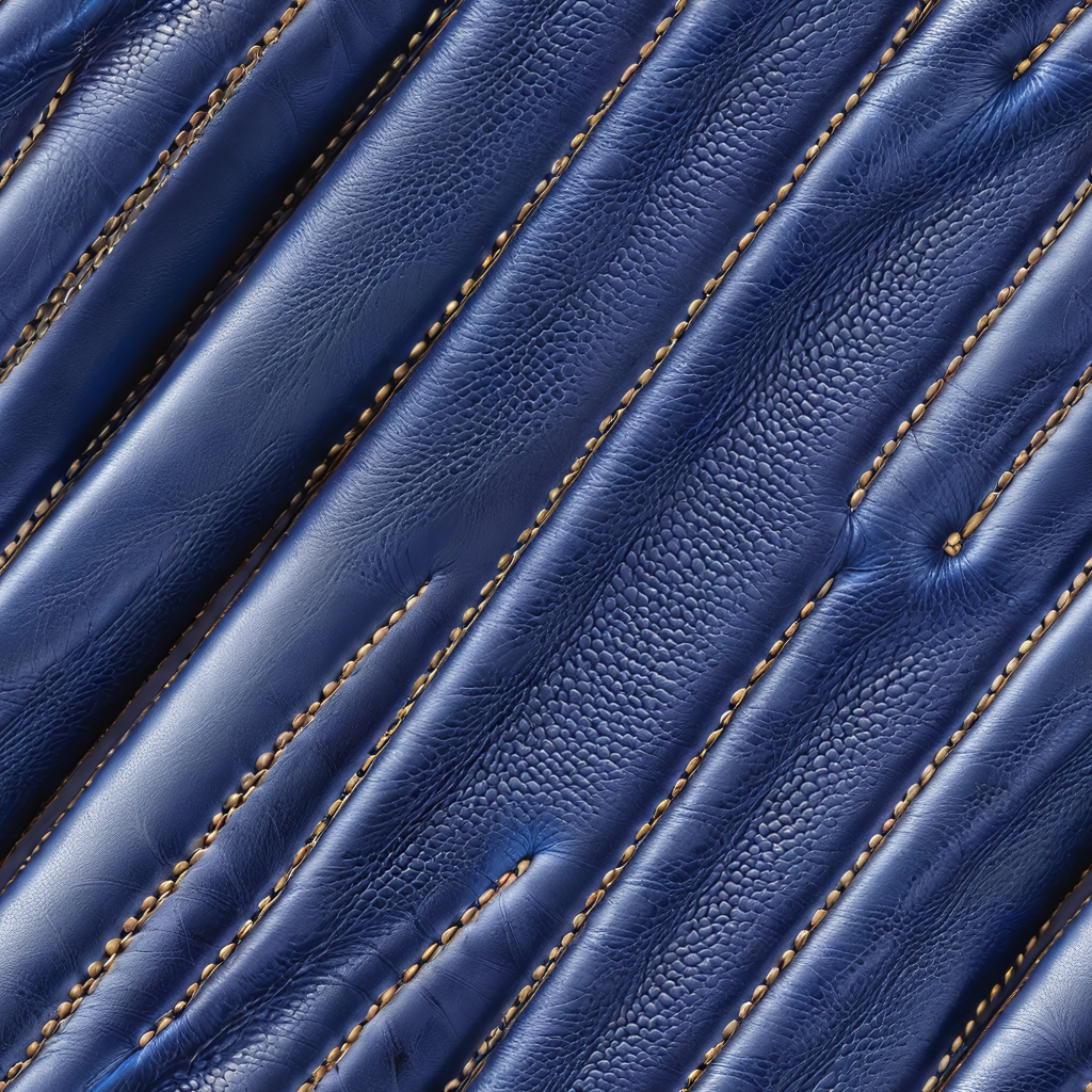 Seamless 3D Glossy Navy Blue Leather PBR Texture with Gold Stitching and Fine Grain