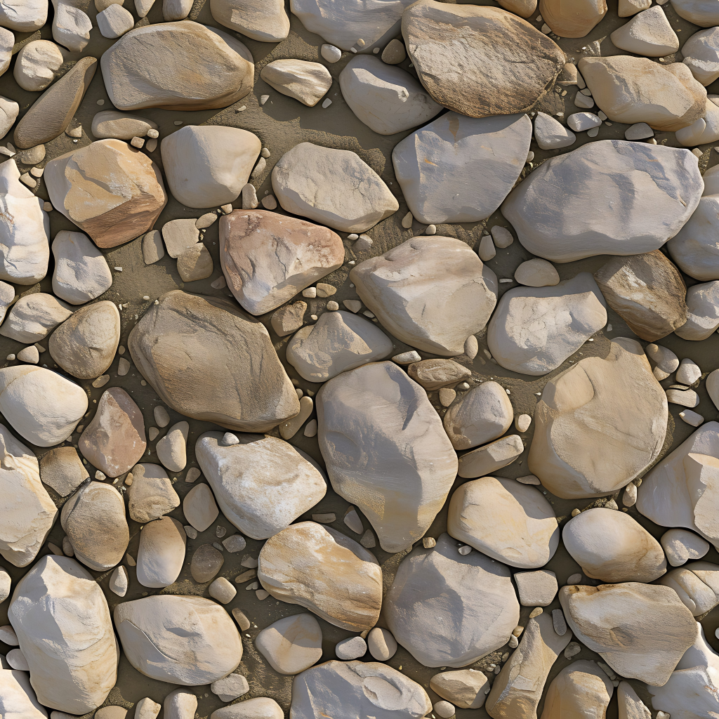 Seamless 3d texture pbr 8k river stone mosaic tiles with rough stone texture and natural earth tones