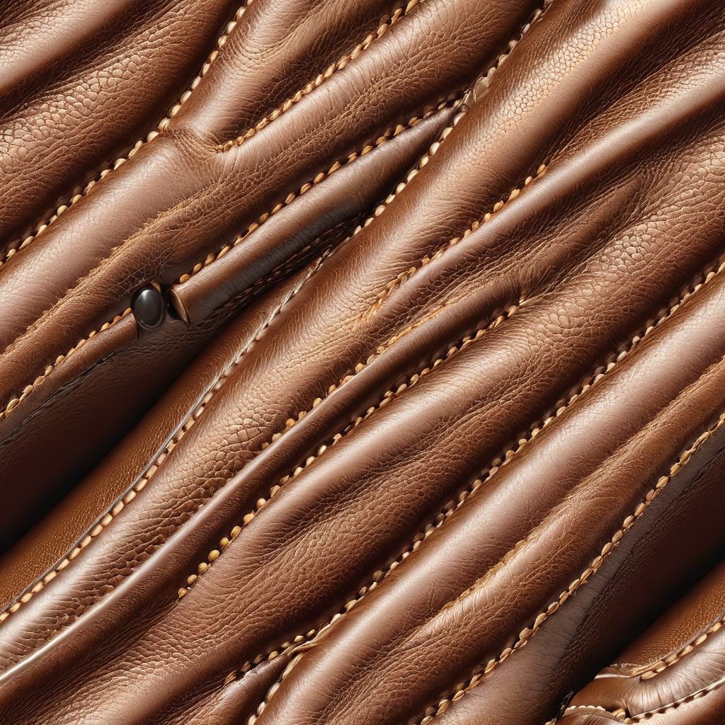 Seamless 3D PBR Texture of Pebbled Brown Leather with Detailed Stitches and Smooth Finish