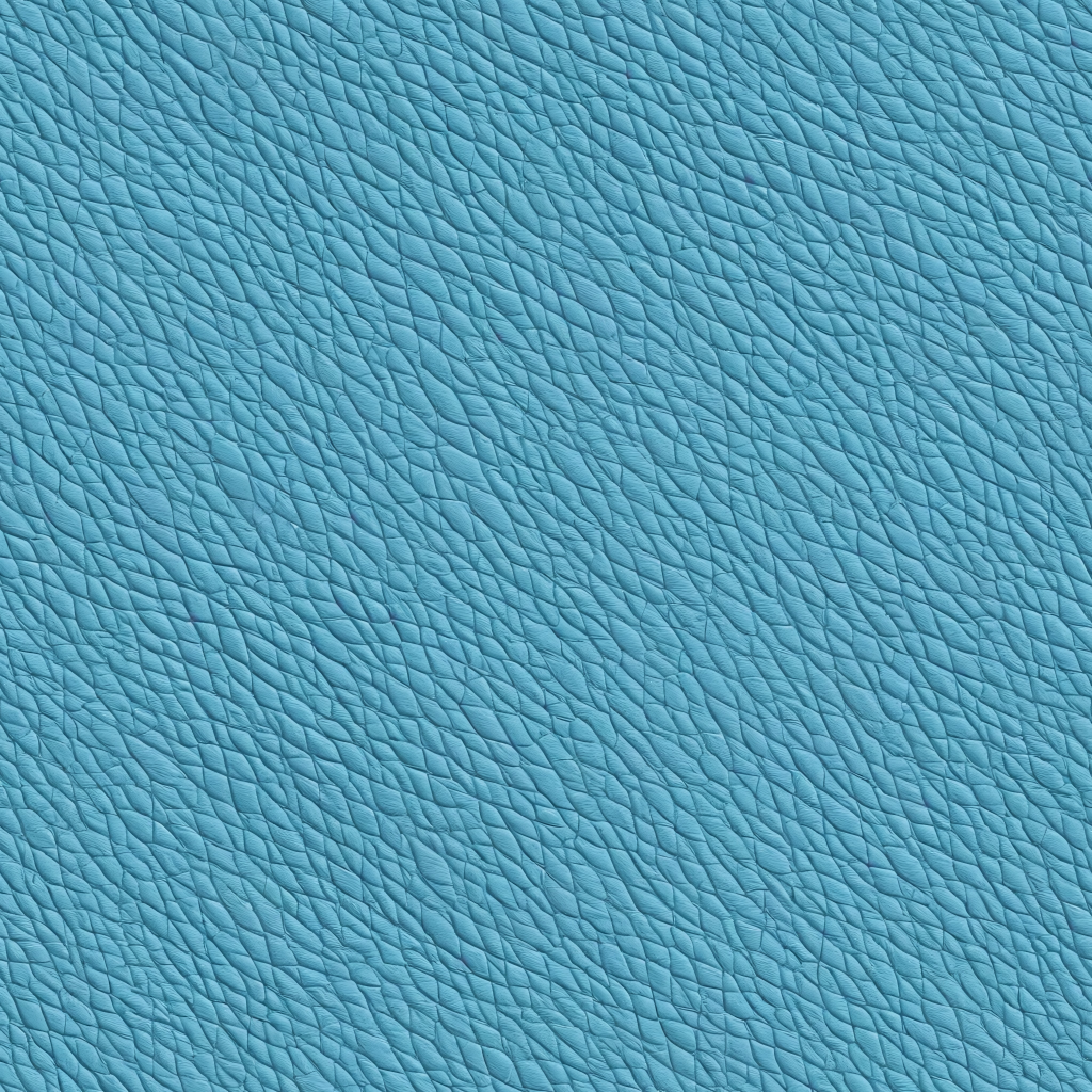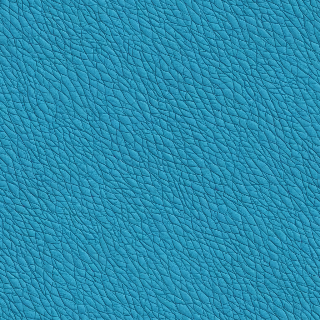 Seamless 3D teal pebbled leather PBR texture with stitched panels and soft folds