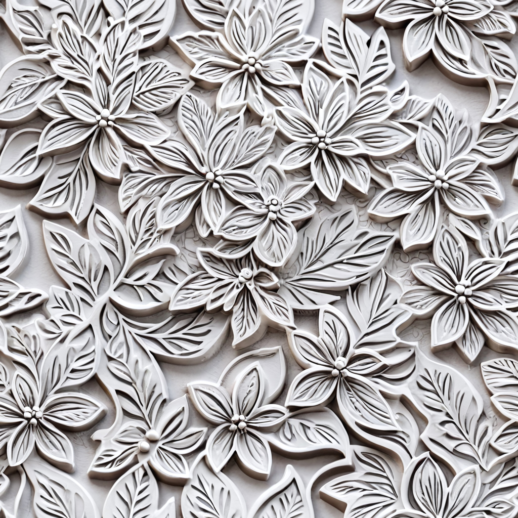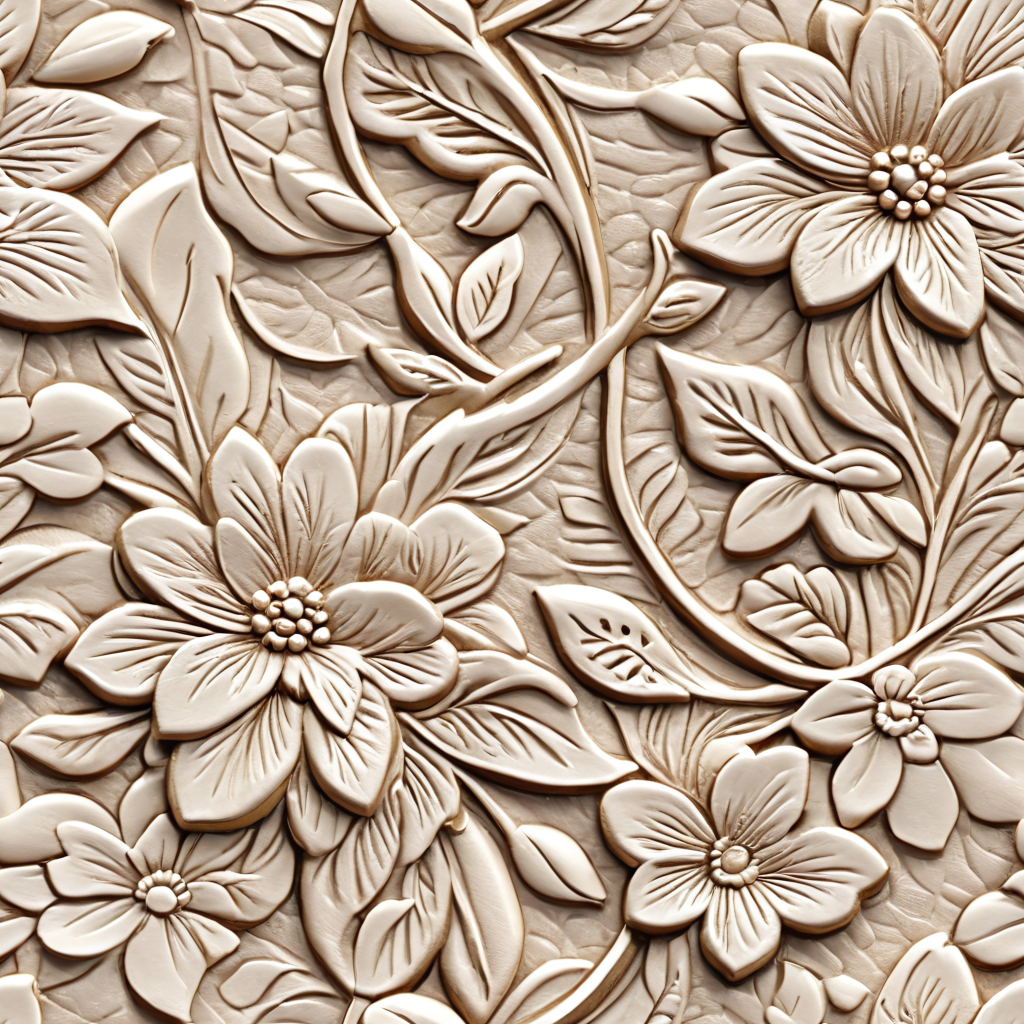 Seamless 3d texture pbr 8k glazed ceramic mosaic with floral motifs and pastel palette