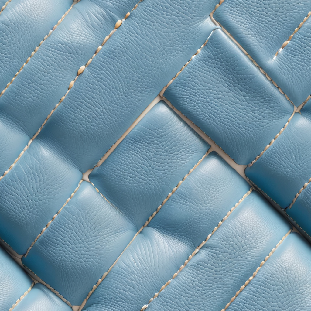 Seamless 3D PBR Blue Quilted Leather Texture Featuring Padded Panels and Visible Stitching