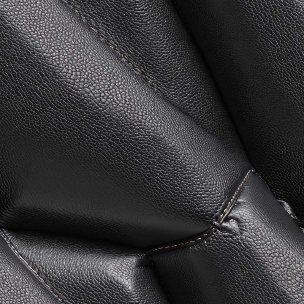 Seamless 3D Black Leather PBR Texture Featuring Stitched Quilted Panels and Visible Grain