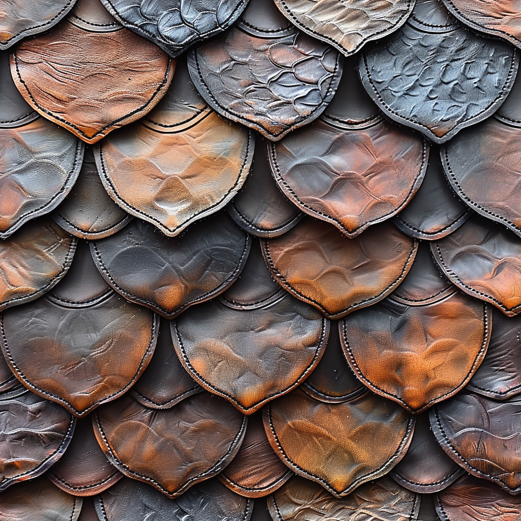 Seamless 3d texture pbr 8k fish scale tiles mosaic with vibrant colors and glossy finish surface