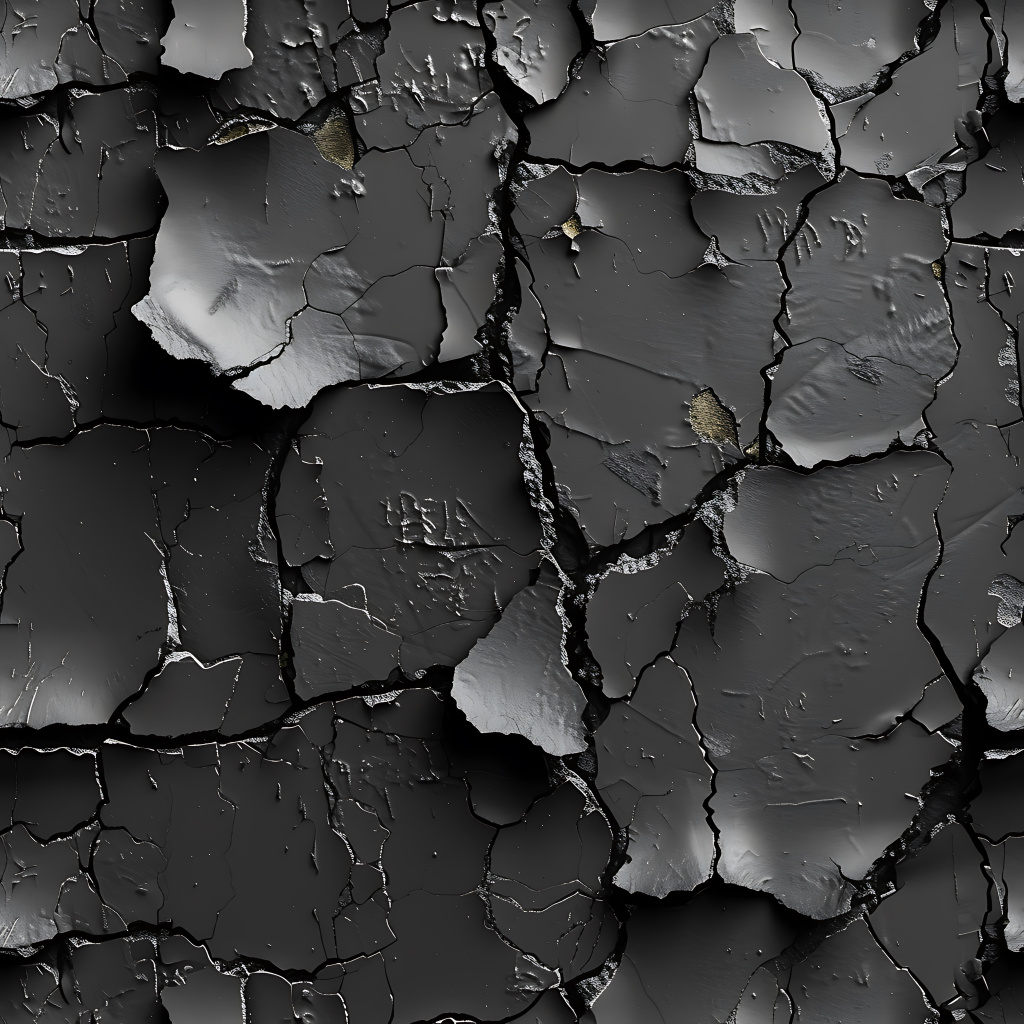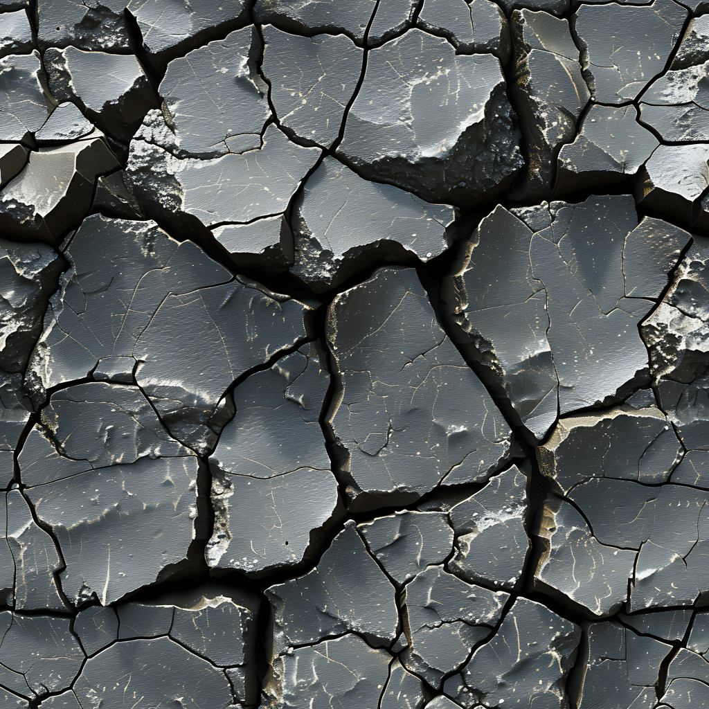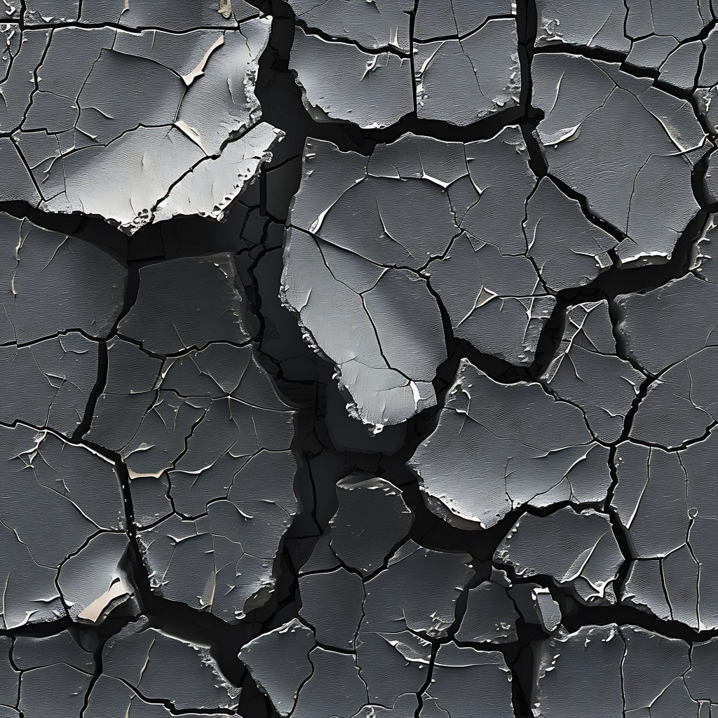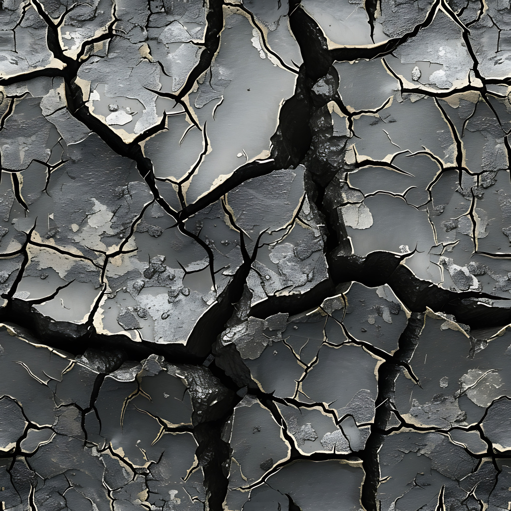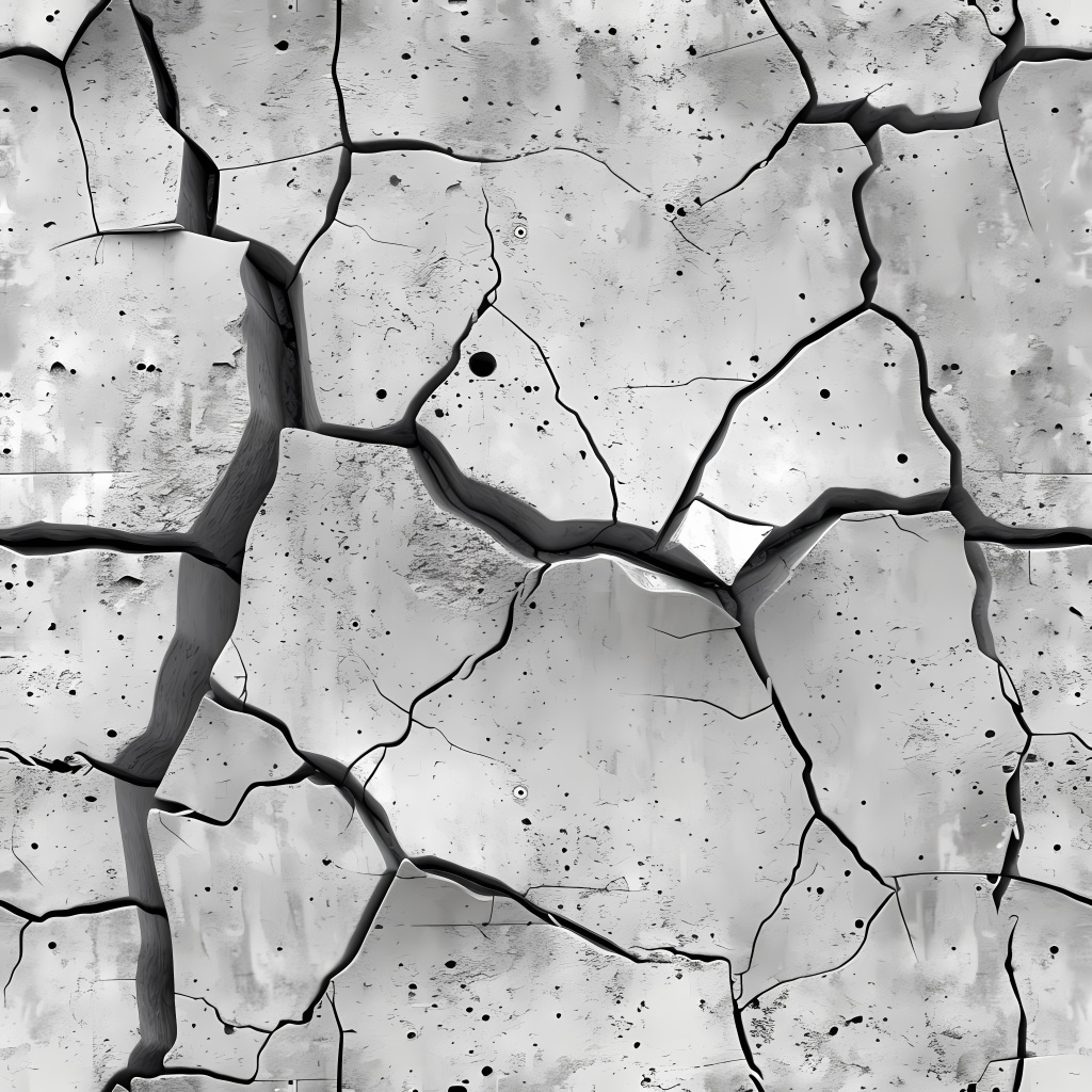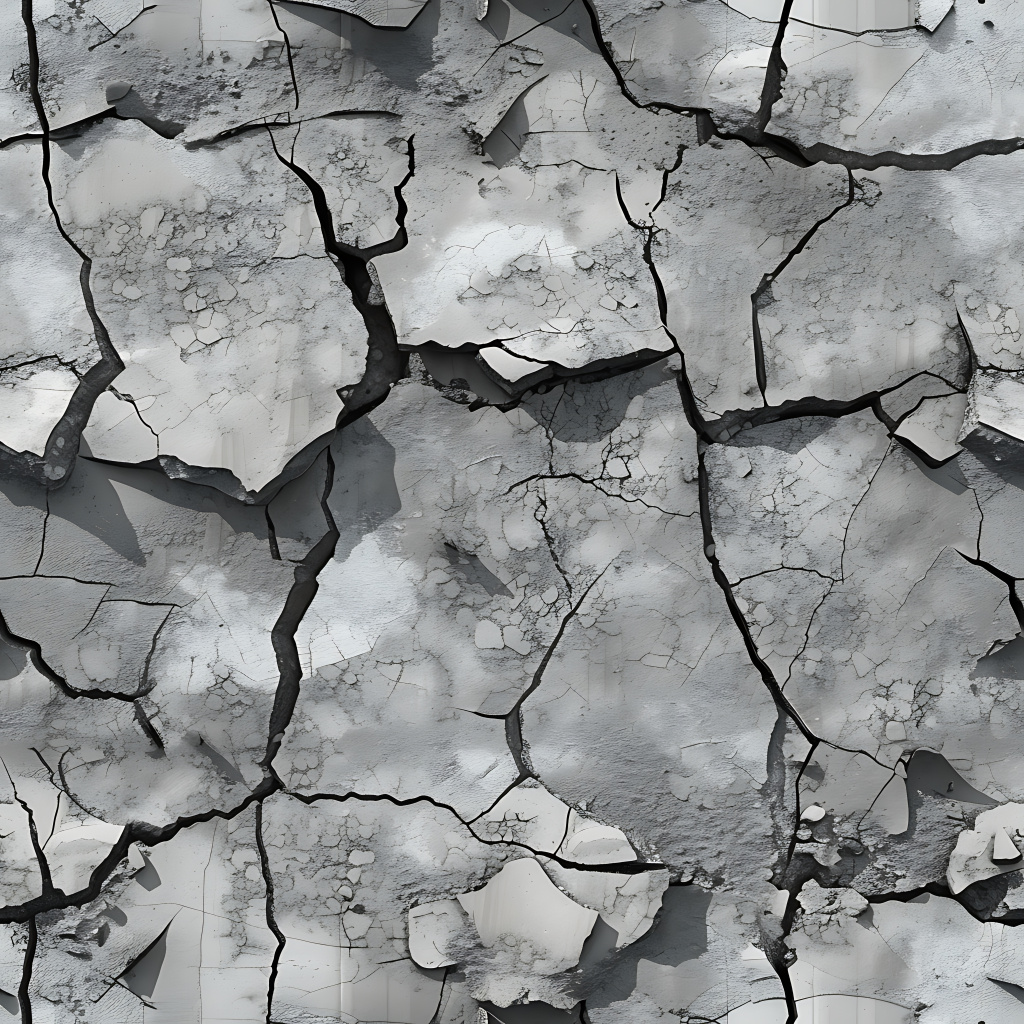 The Cracked & Holes collection captures fractured, chipped, perforated, and cavity-rich surfaces for believable wear and structural stress. You will find cracked concrete and asphalt, fractured stone and baked clay, peeling paint and plaster, broken and missing ceramic tiles, splintered wood, perforated/expanded metals and grilles, mesh sheets, torn fabric, ripped paper/cardboard, and parched soil/dry mud. Every texture is seamless/tileable and ready for a metal-rough PBR pipeline in Blender, Unreal Engine, and Unity.