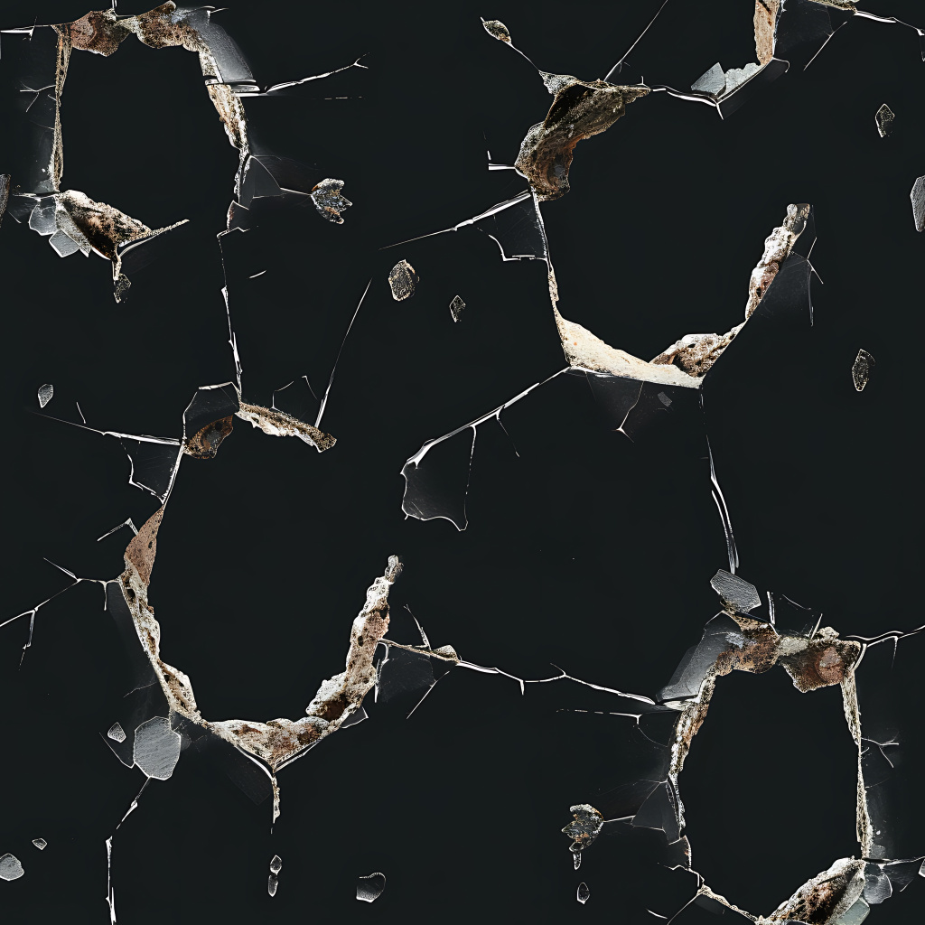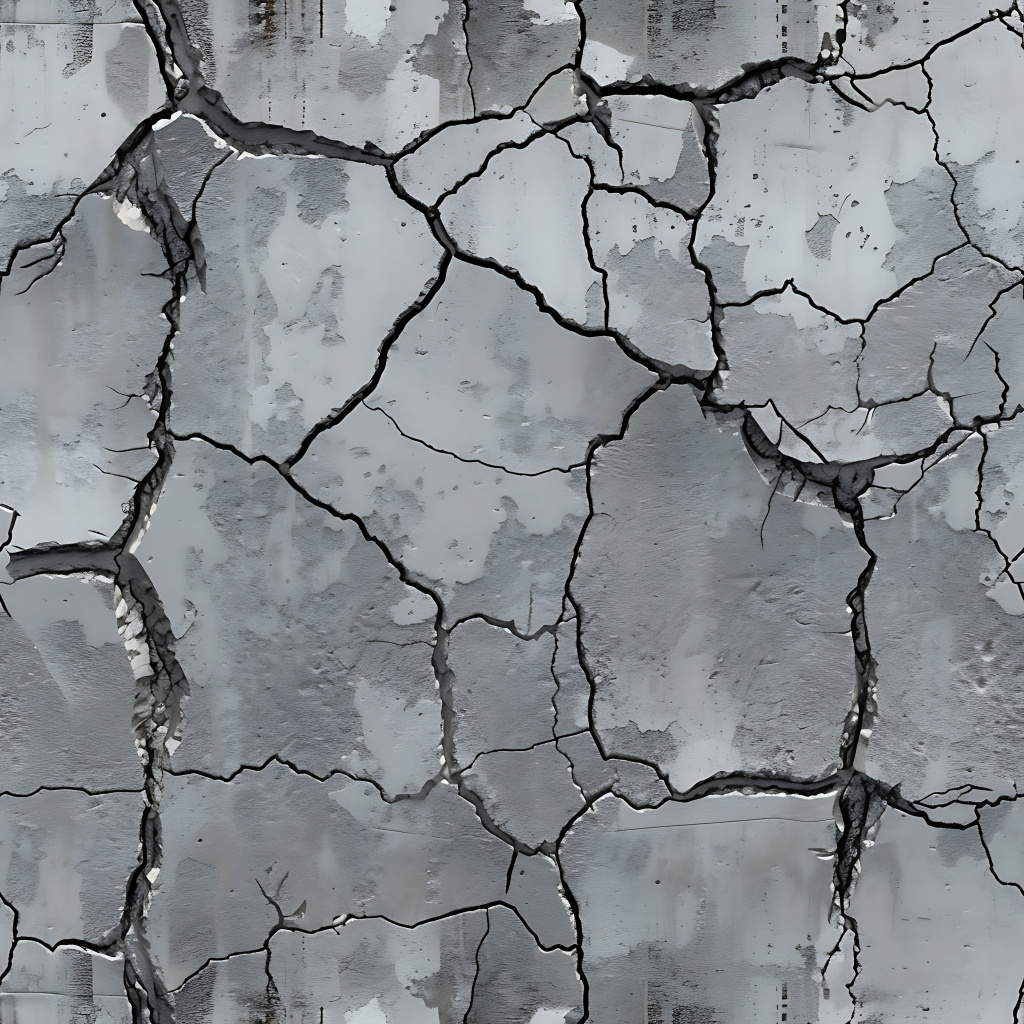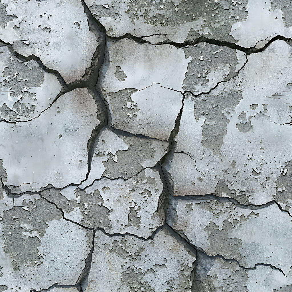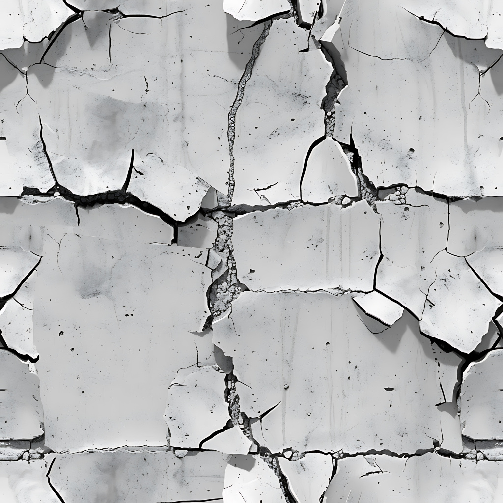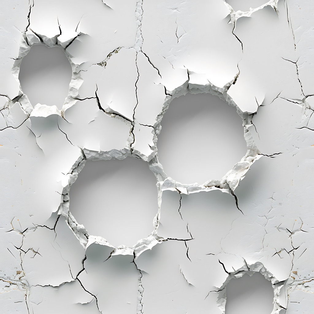 The Cracked & Holes collection captures fractured, chipped, perforated, and cavity-rich surfaces for believable wear and structural stress. You will find cracked concrete and asphalt, fractured stone and baked clay, peeling paint and plaster, broken and missing ceramic tiles, splintered wood, perforated/expanded metals and grilles, mesh sheets, torn fabric, ripped paper/cardboard, and parched soil/dry mud. Every texture is seamless/tileable and ready for a metal-rough PBR pipeline in Blender, Unreal Engine, and Unity.