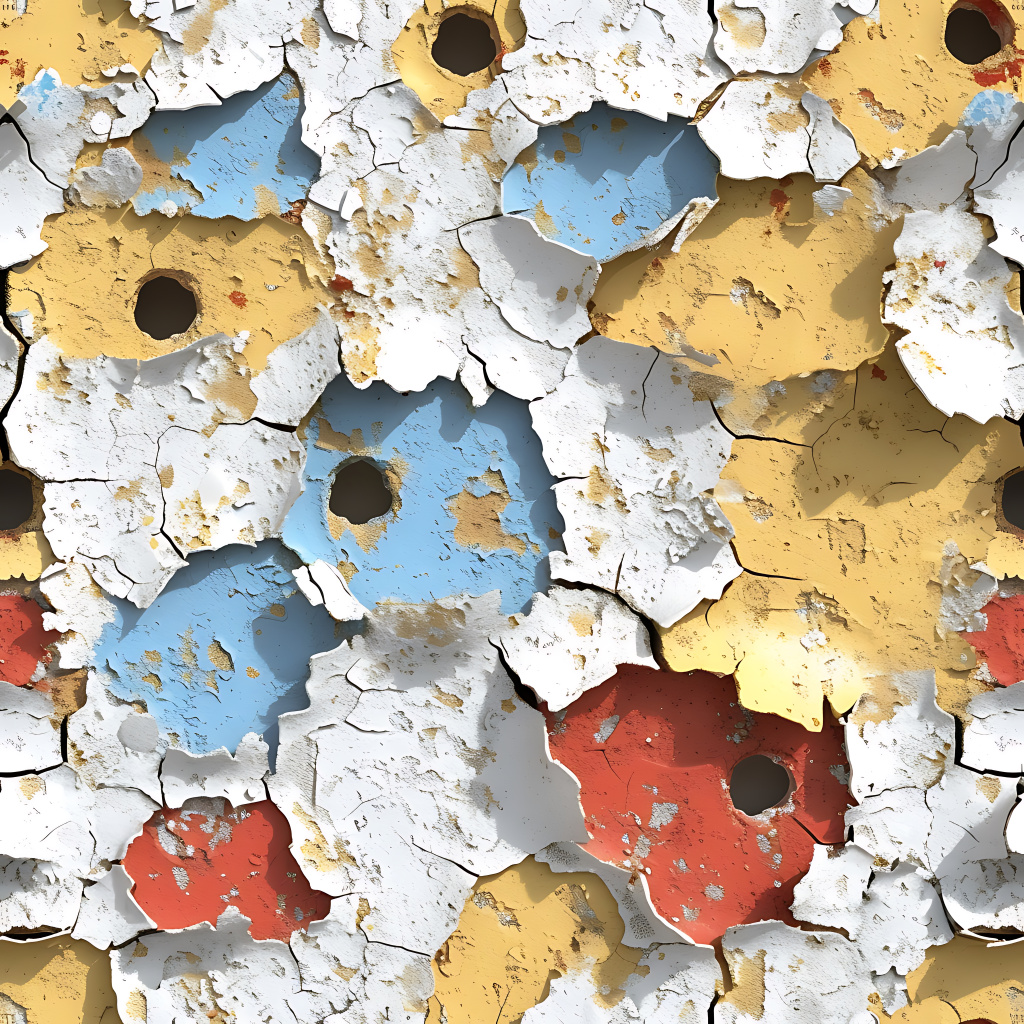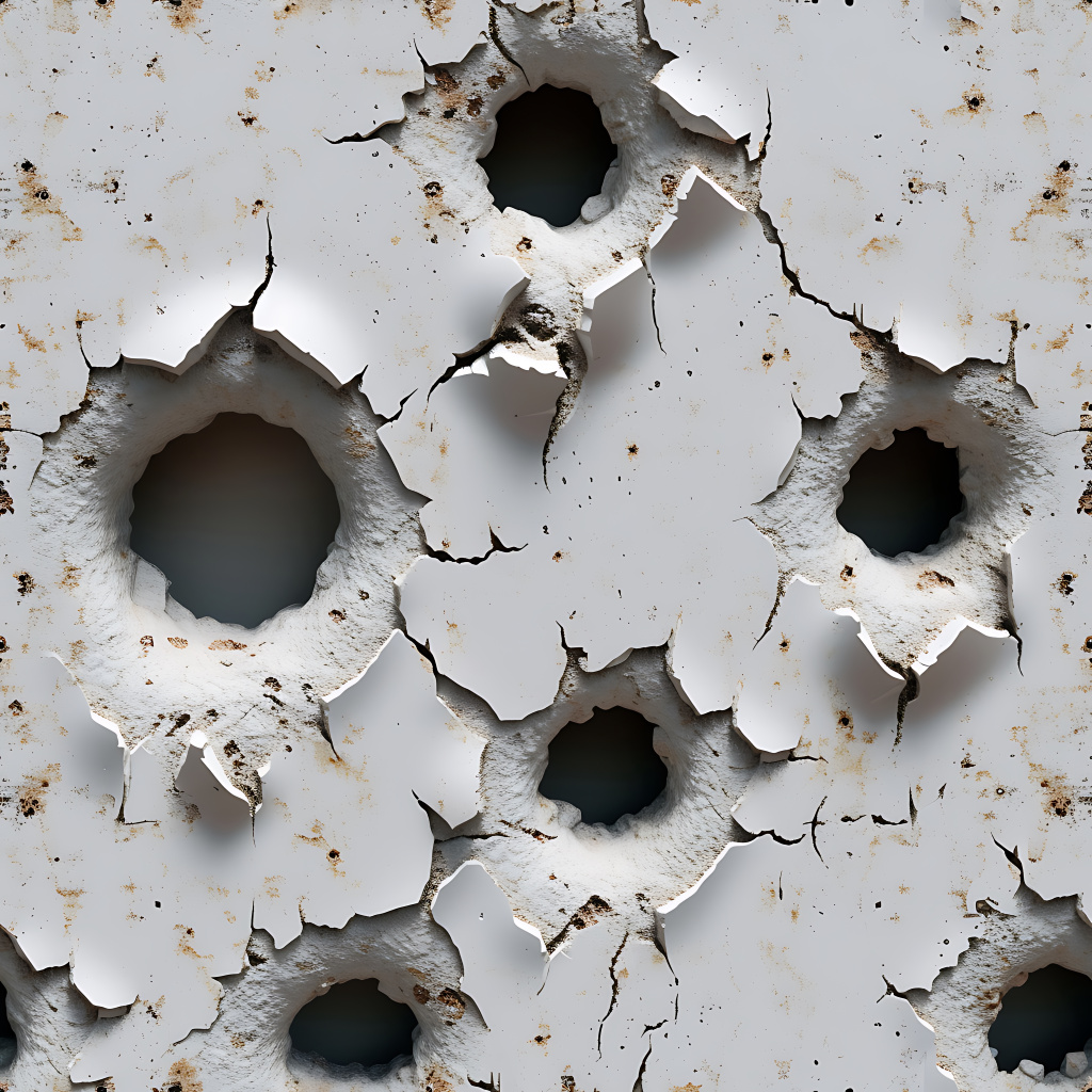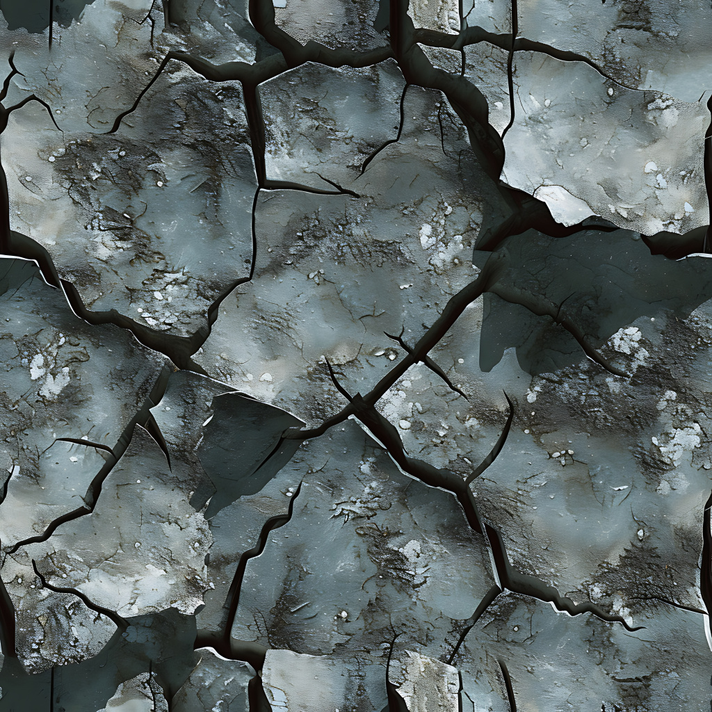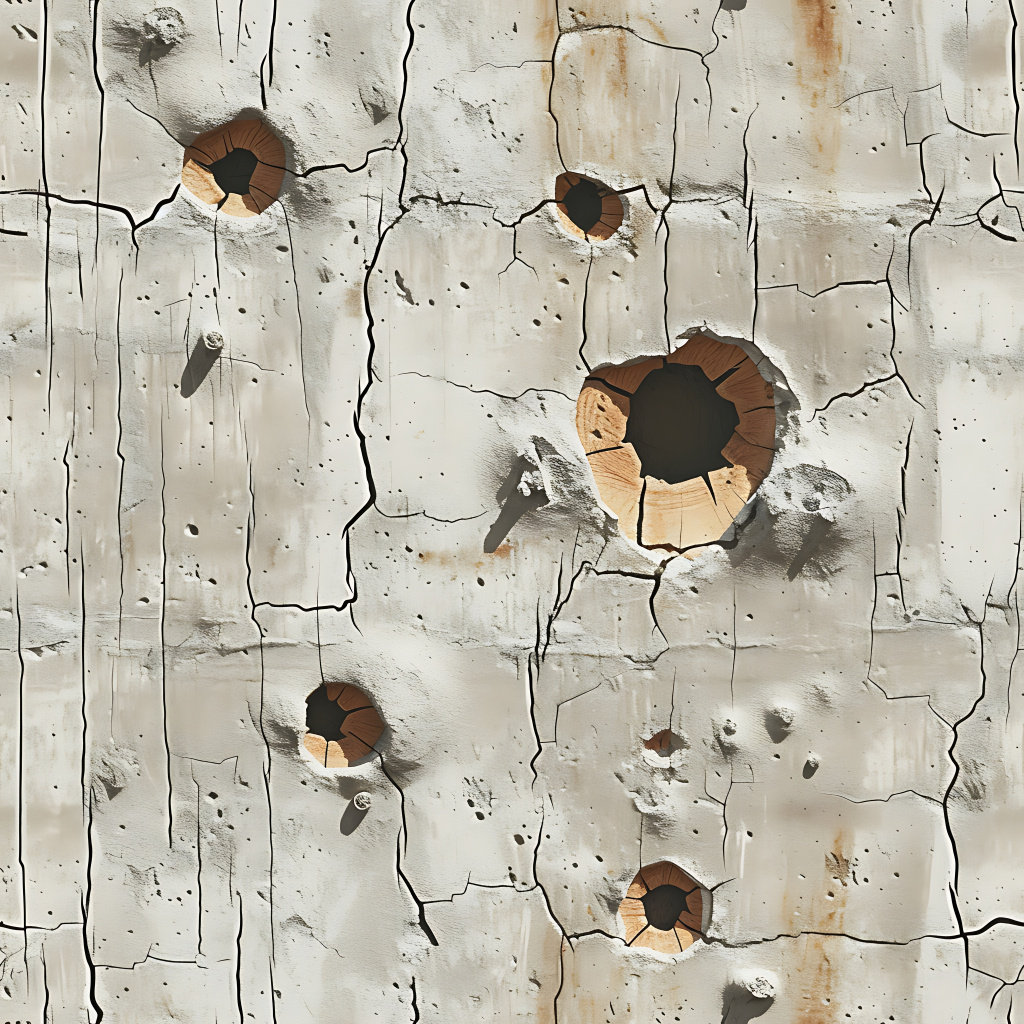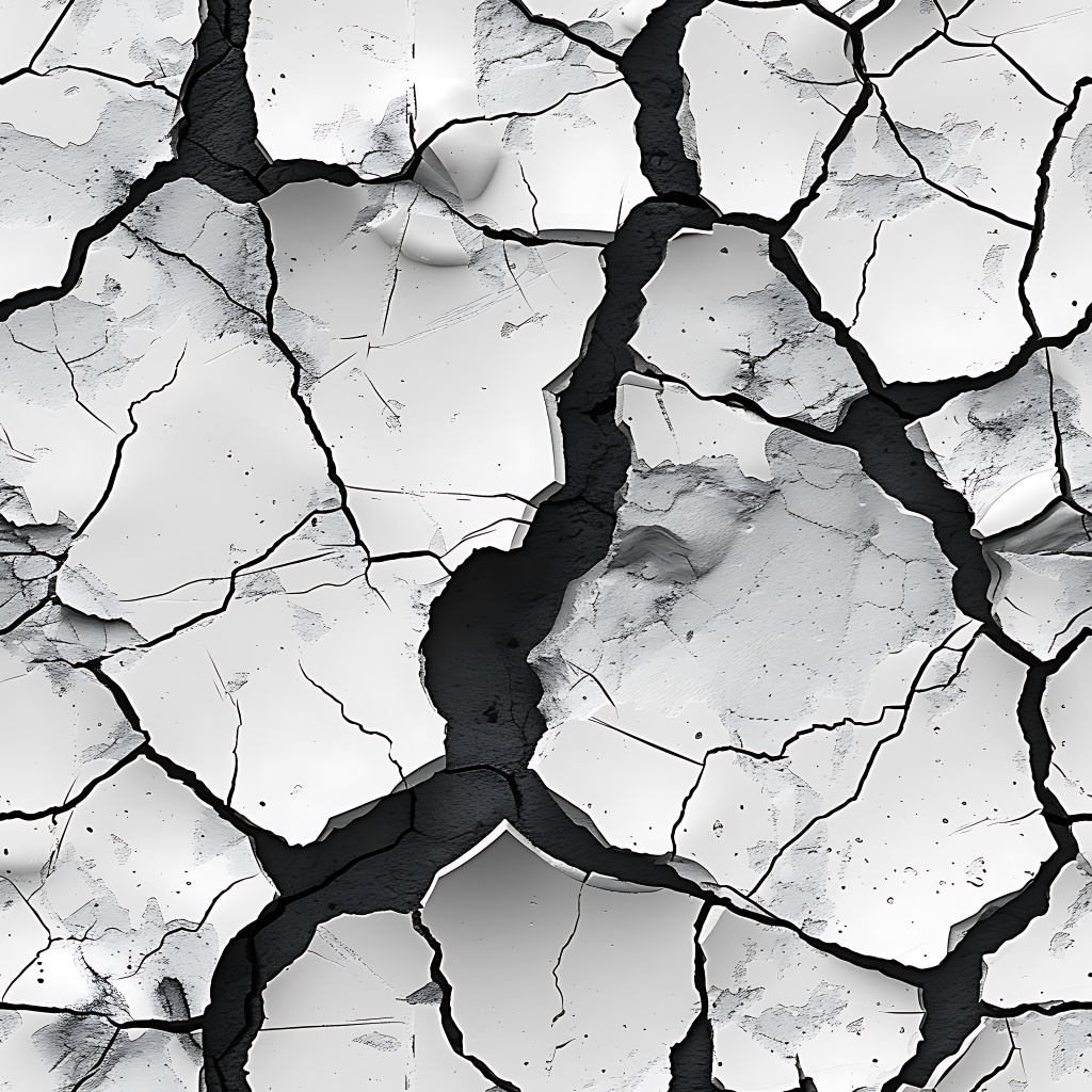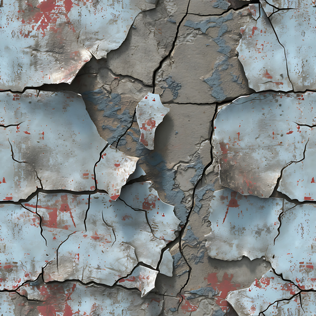 The Cracked & Holes collection captures fractured, chipped, perforated, and cavity-rich surfaces for believable wear and structural stress. You will find cracked concrete and asphalt, fractured stone and baked clay, peeling paint and plaster, broken and missing ceramic tiles, splintered wood, perforated/expanded metals and grilles, mesh sheets, torn fabric, ripped paper/cardboard, and parched soil/dry mud. Every texture is seamless/tileable and ready for a metal-rough PBR pipeline in Blender, Unreal Engine, and Unity.