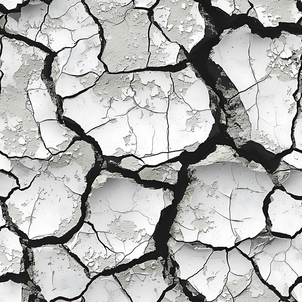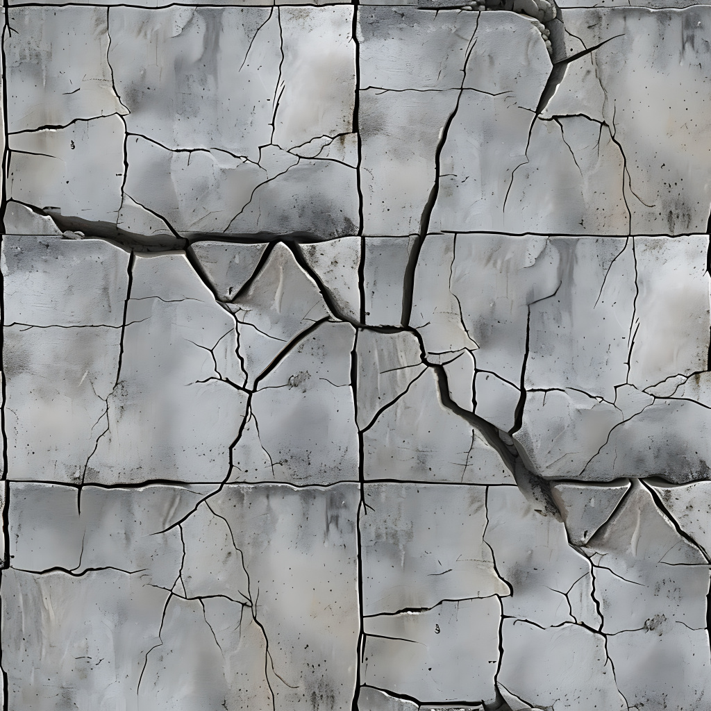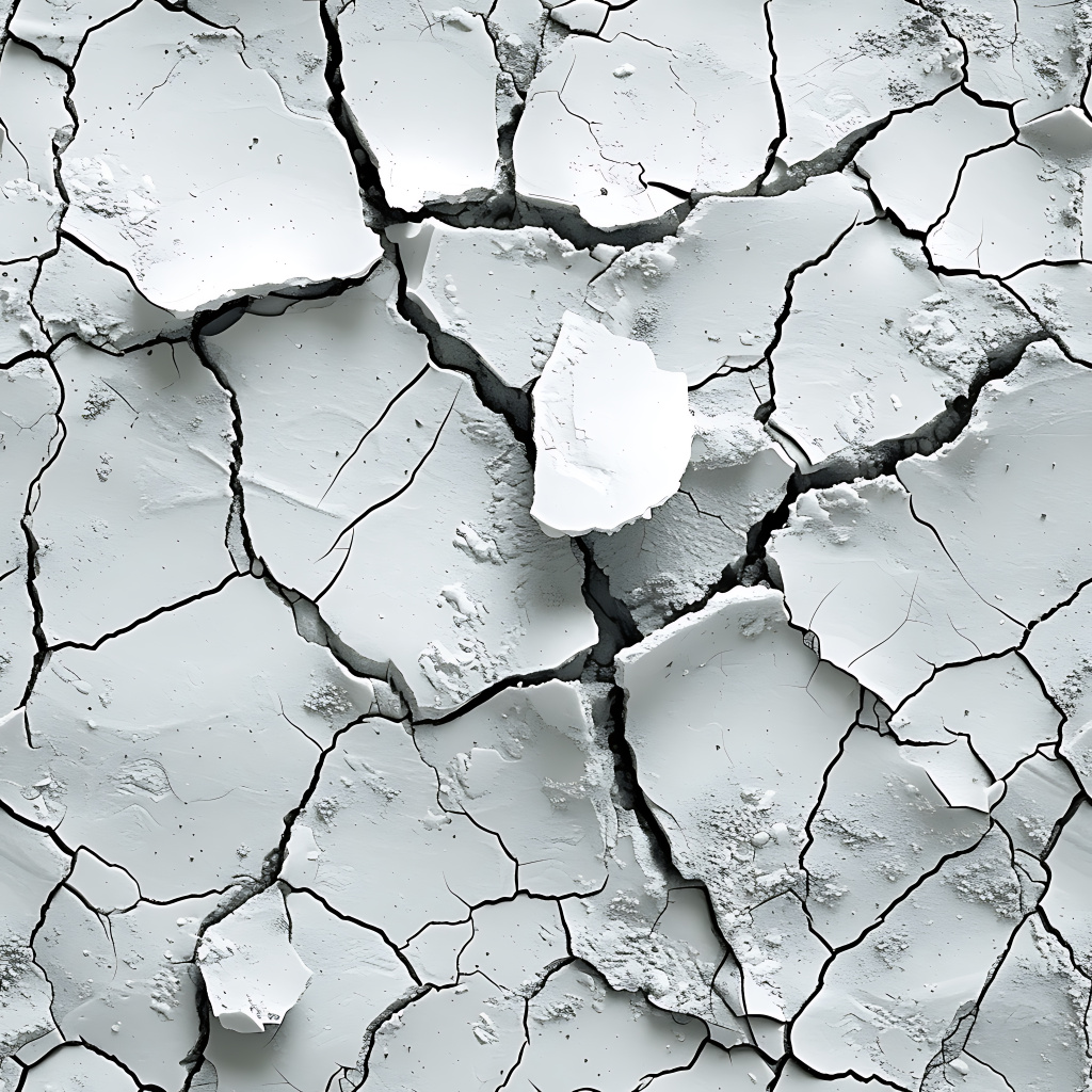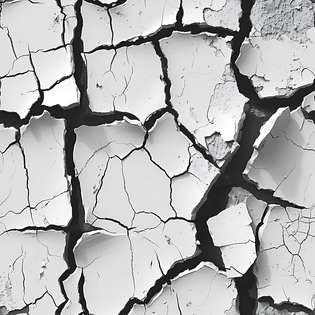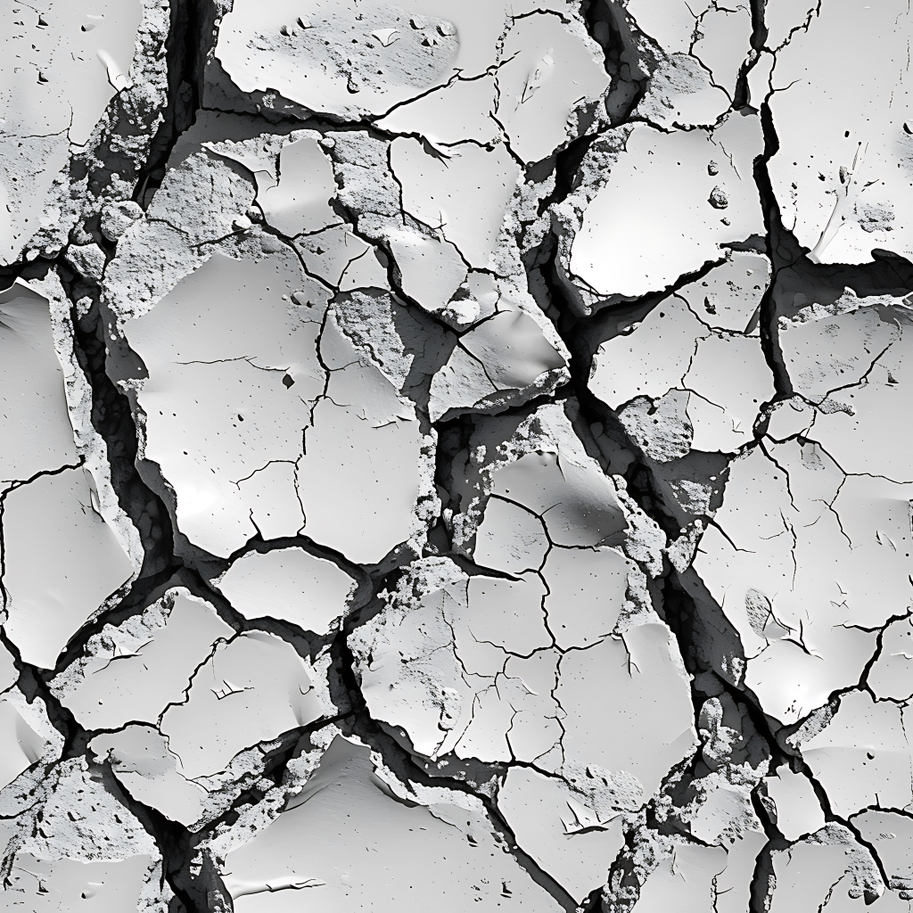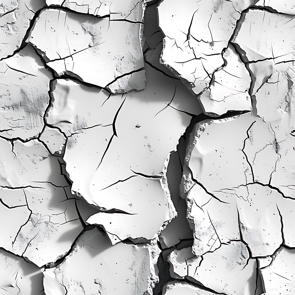 The Cracked & Holes collection captures fractured, chipped, perforated, and cavity-rich surfaces for believable wear and structural stress. You will find cracked concrete and asphalt, fractured stone and baked clay, peeling paint and plaster, broken and missing ceramic tiles, splintered wood, perforated/expanded metals and grilles, mesh sheets, torn fabric, ripped paper/cardboard, and parched soil/dry mud. Every texture is seamless/tileable and ready for a metal-rough PBR pipeline in Blender, Unreal Engine, and Unity.