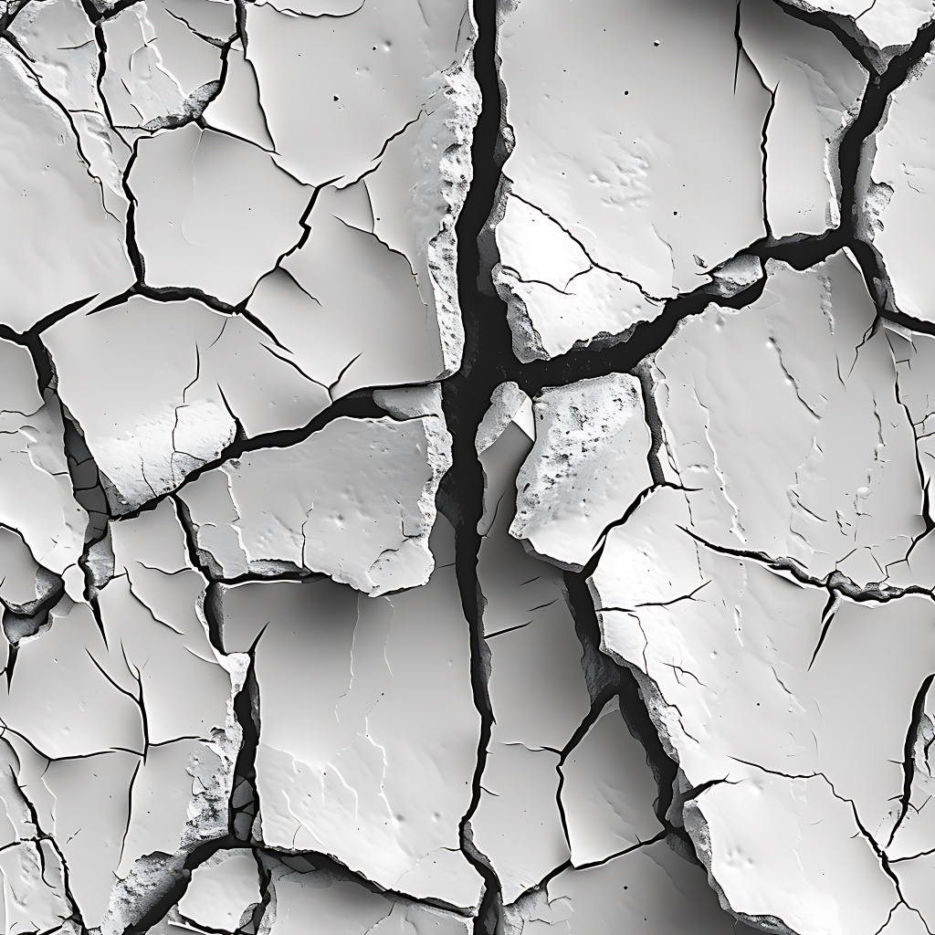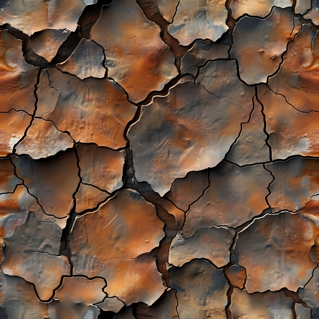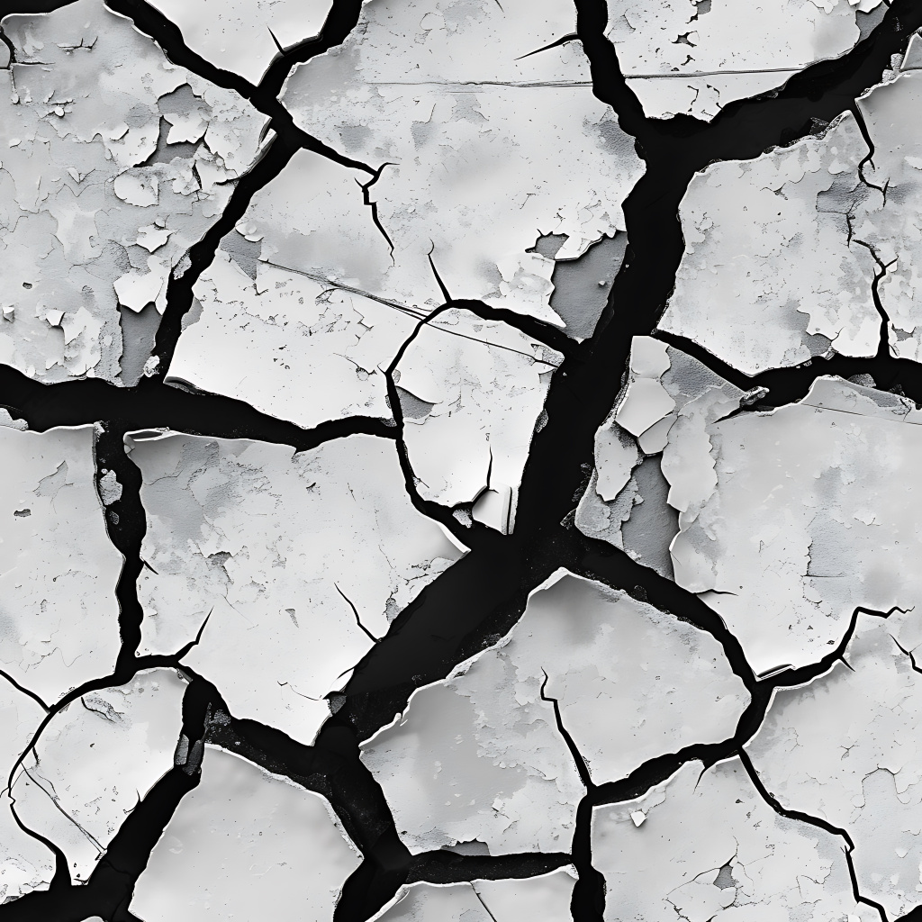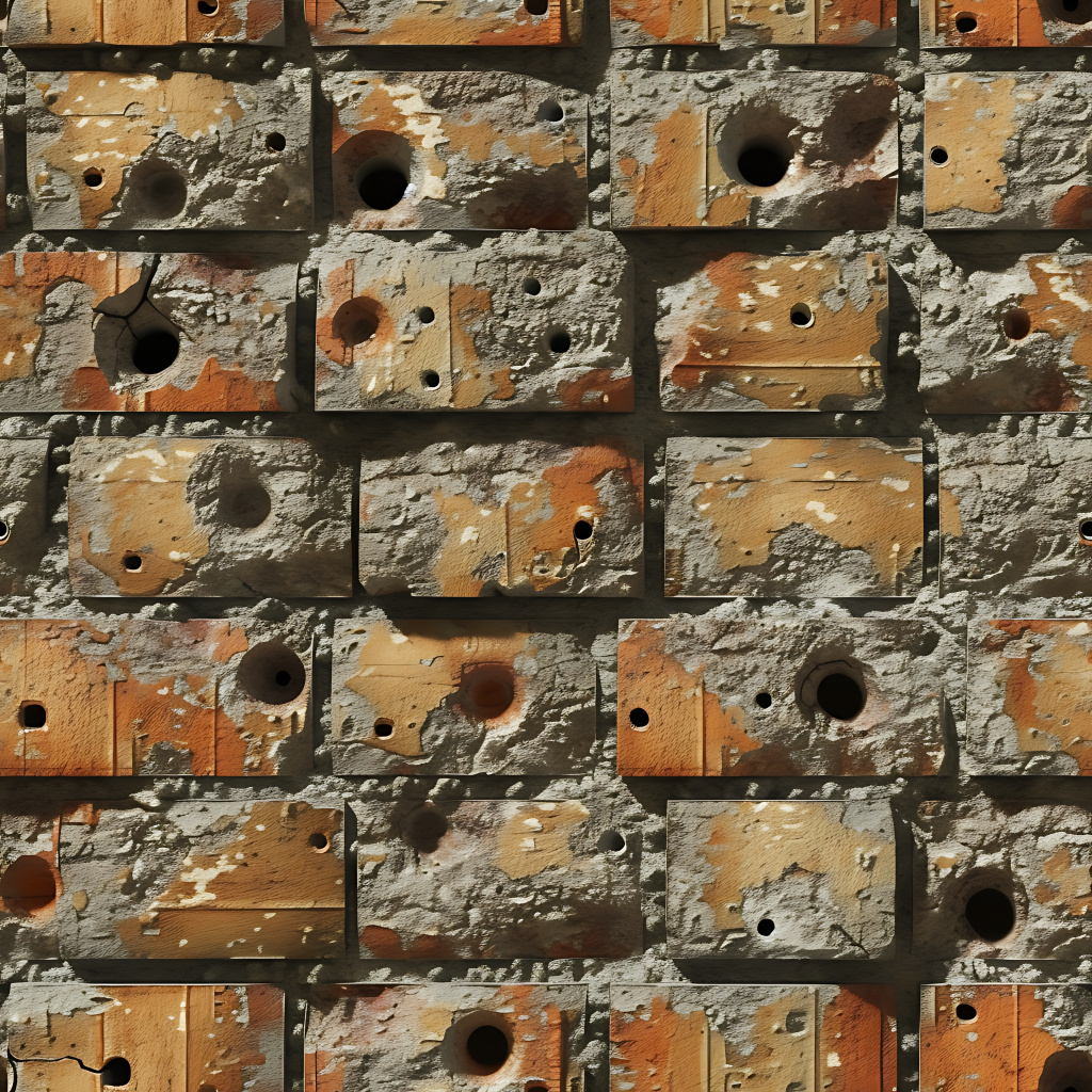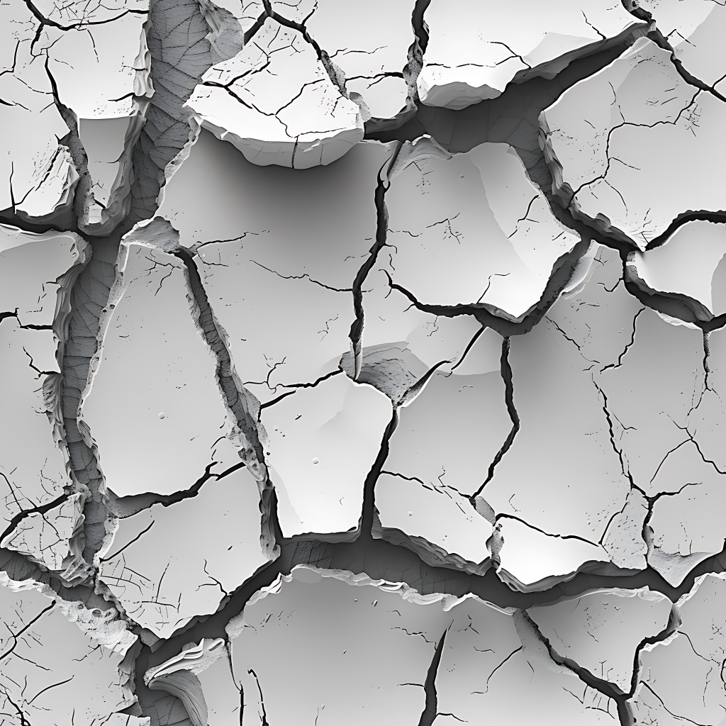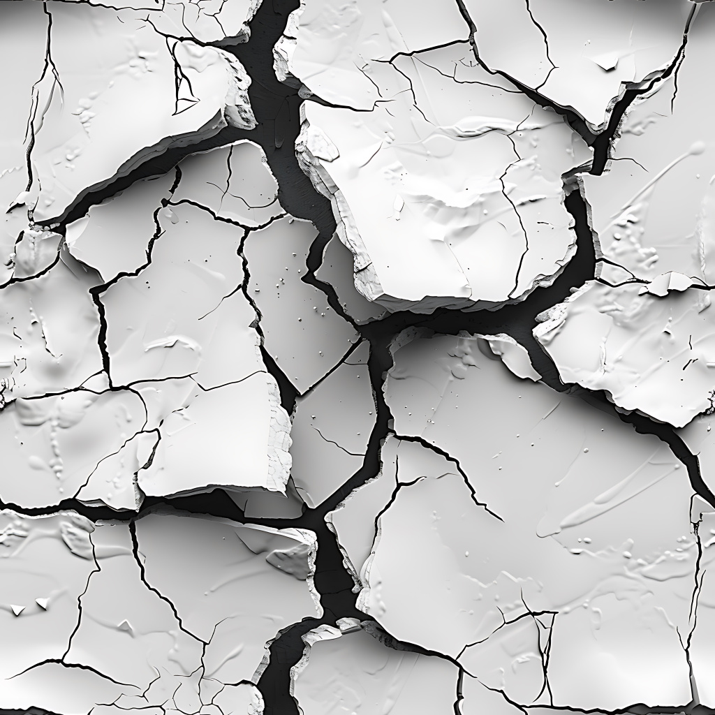 The Cracked & Holes collection captures fractured, chipped, perforated, and cavity-rich surfaces for believable wear and structural stress. You will find cracked concrete and asphalt, fractured stone and baked clay, peeling paint and plaster, broken and missing ceramic tiles, splintered wood, perforated/expanded metals and grilles, mesh sheets, torn fabric, ripped paper/cardboard, and parched soil/dry mud. Every texture is seamless/tileable and ready for a metal-rough PBR pipeline in Blender, Unreal Engine, and Unity.
