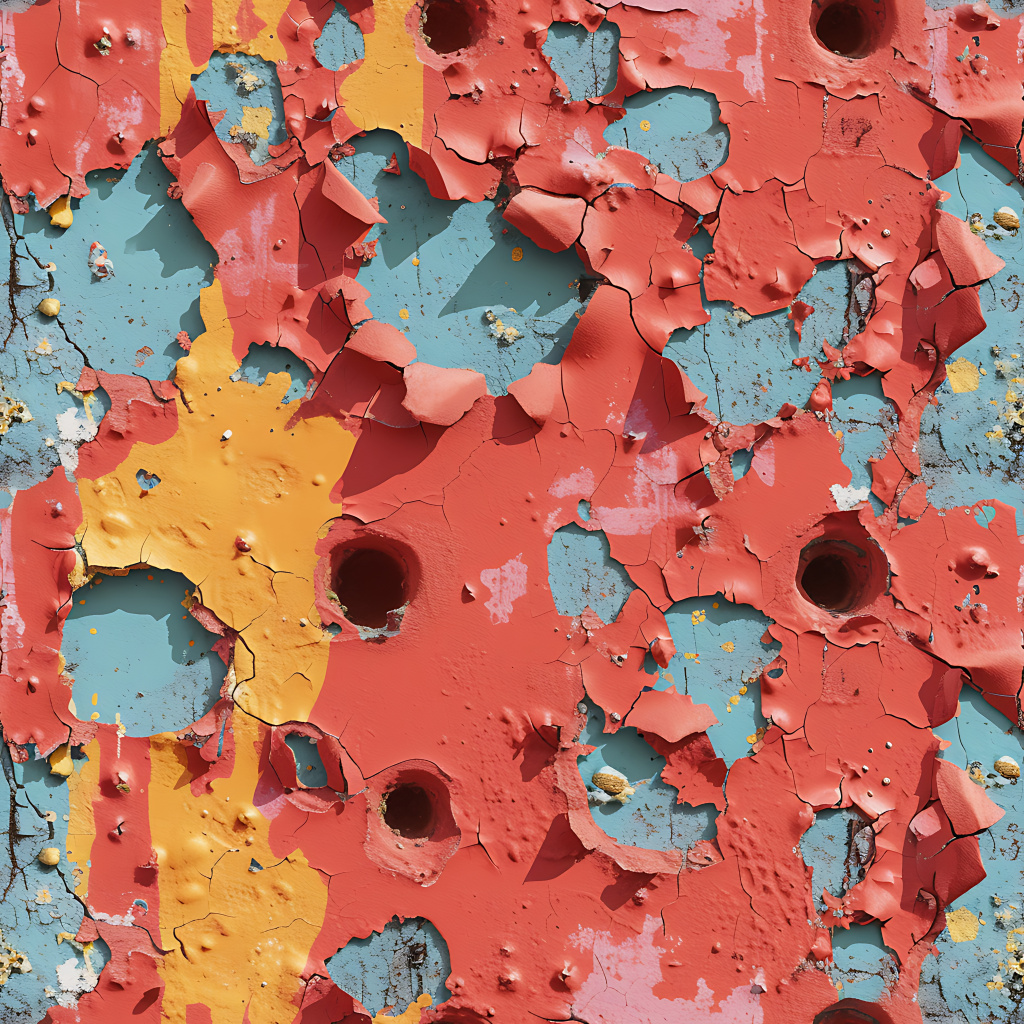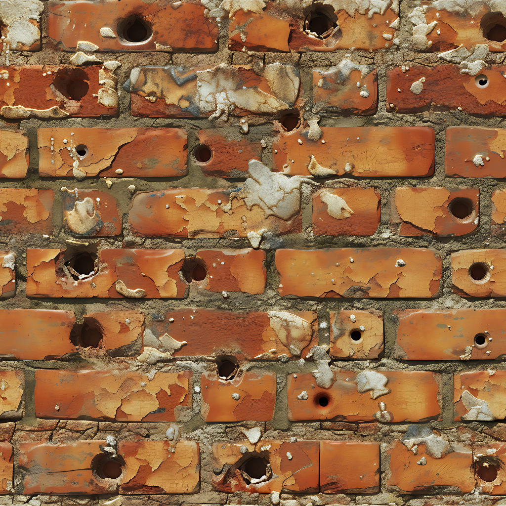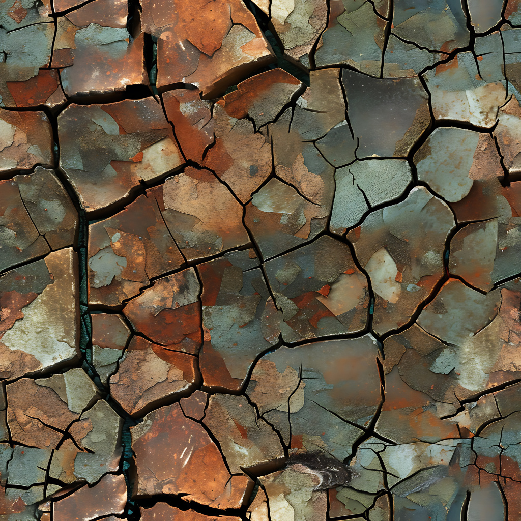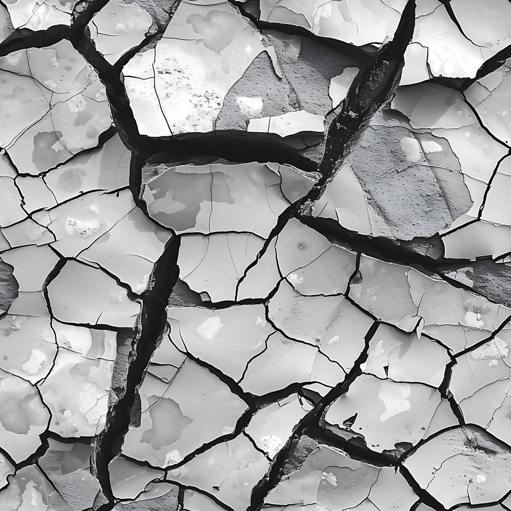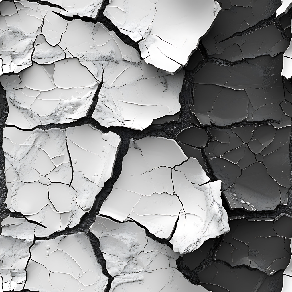 The Cracked & Holes collection captures fractured, chipped, perforated, and cavity-rich surfaces for believable wear and structural stress. You will find cracked concrete and asphalt, fractured stone and baked clay, peeling paint and plaster, broken and missing ceramic tiles, splintered wood, perforated/expanded metals and grilles, mesh sheets, torn fabric, ripped paper/cardboard, and parched soil/dry mud. Every texture is seamless/tileable and ready for a metal-rough PBR pipeline in Blender, Unreal Engine, and Unity.