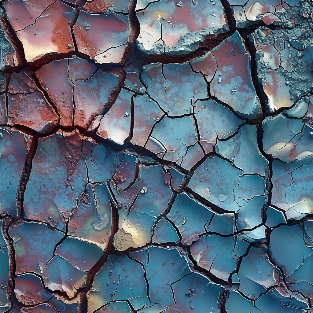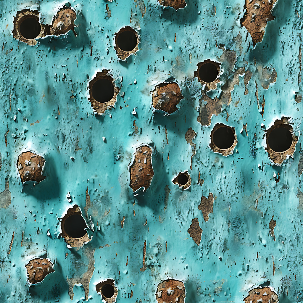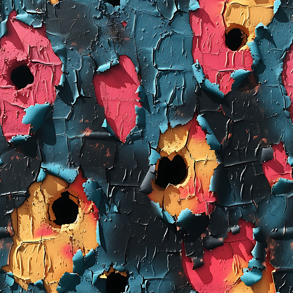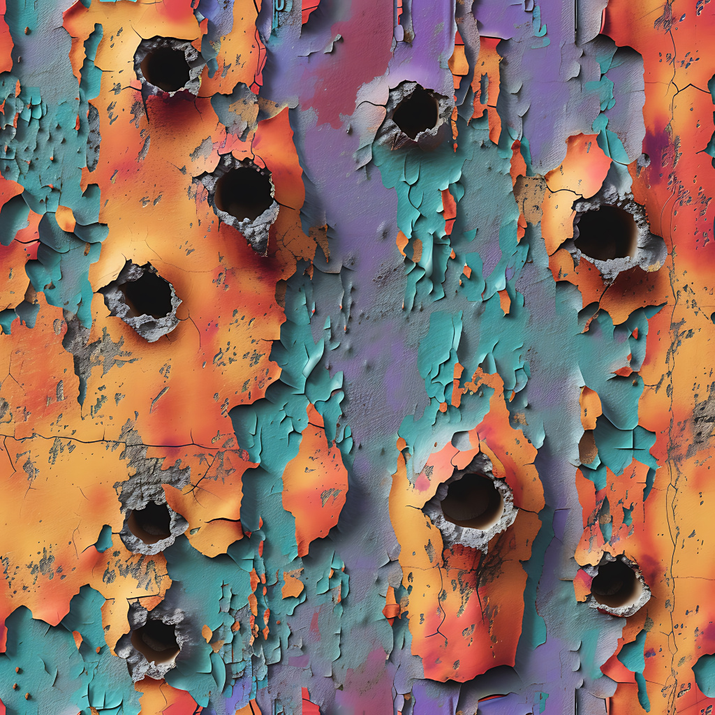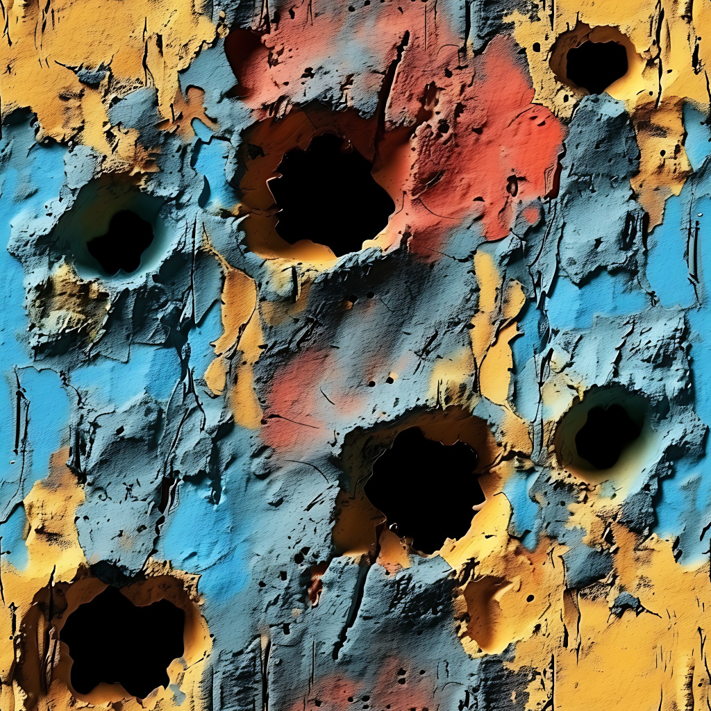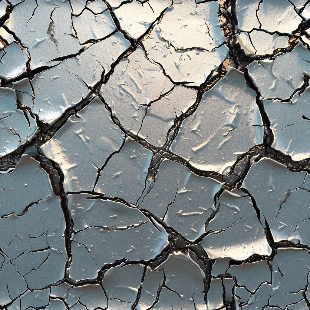 The Cracked & Holes collection captures fractured, chipped, perforated, and cavity-rich surfaces for believable wear and structural stress. You will find cracked concrete and asphalt, fractured stone and baked clay, peeling paint and plaster, broken and missing ceramic tiles, splintered wood, perforated/expanded metals and grilles, mesh sheets, torn fabric, ripped paper/cardboard, and parched soil/dry mud. Every texture is seamless/tileable and ready for a metal-rough PBR pipeline in Blender, Unreal Engine, and Unity.