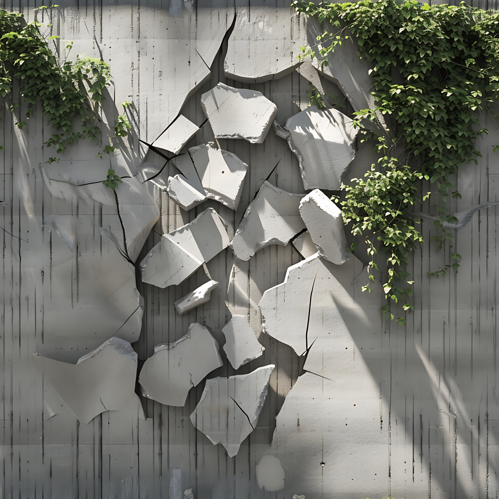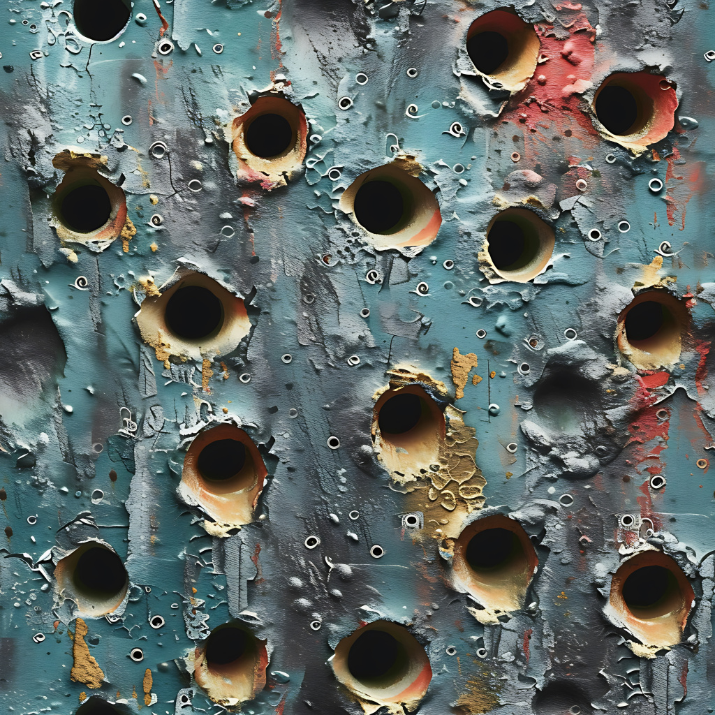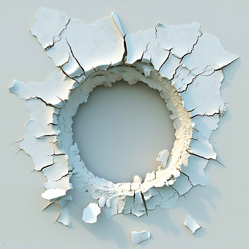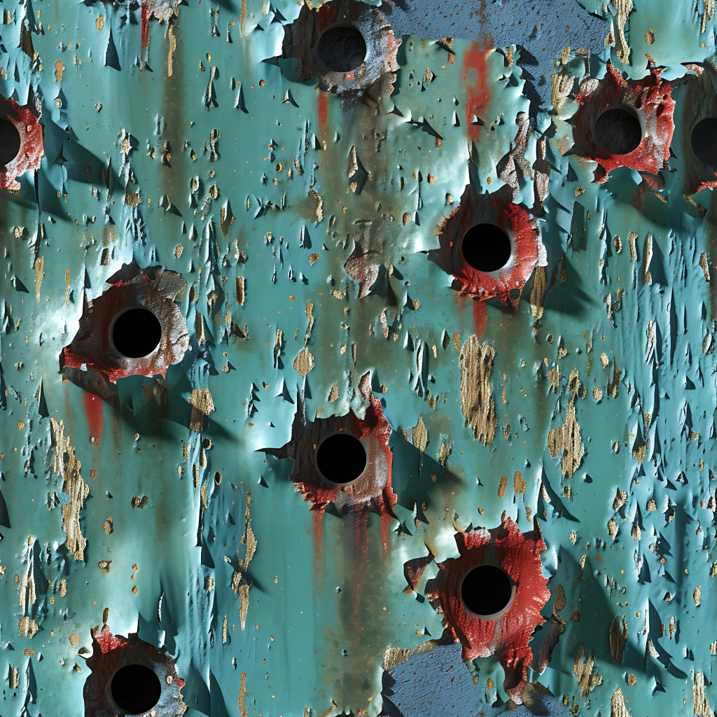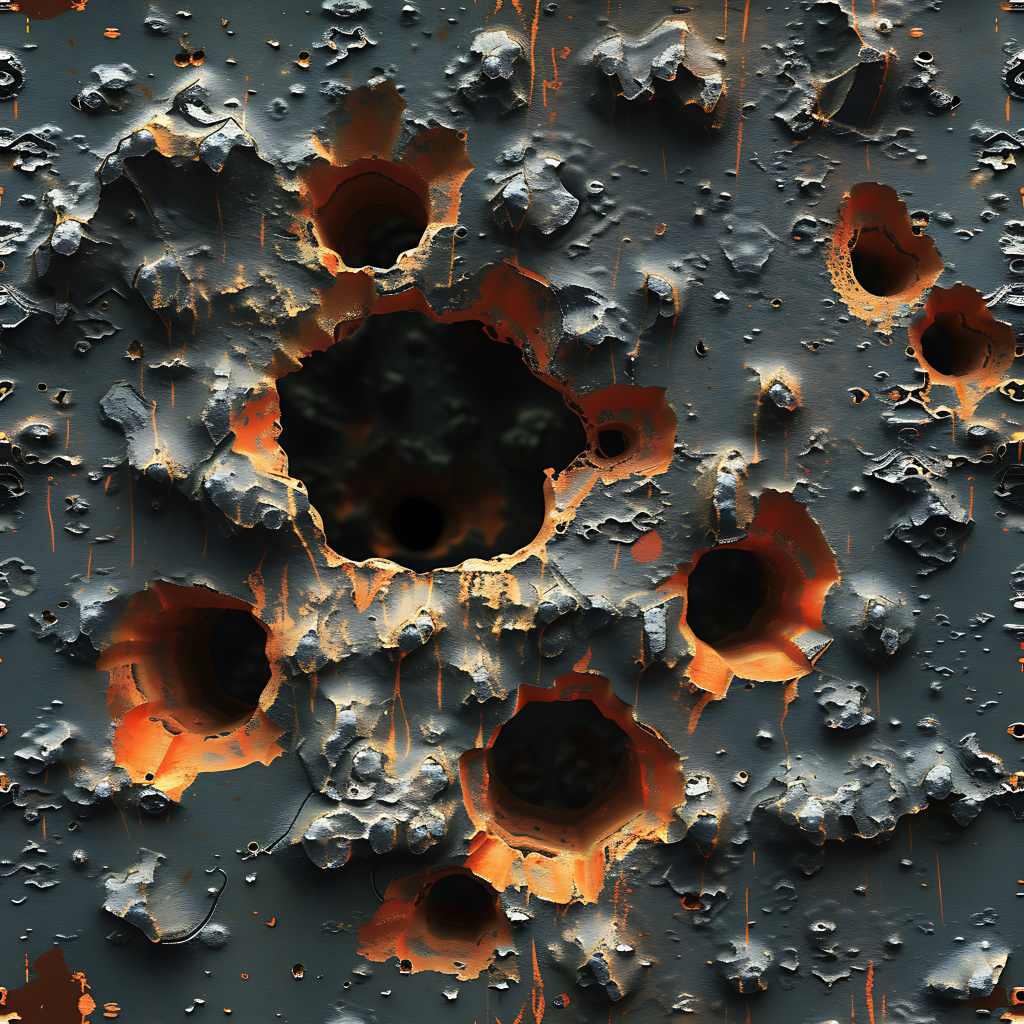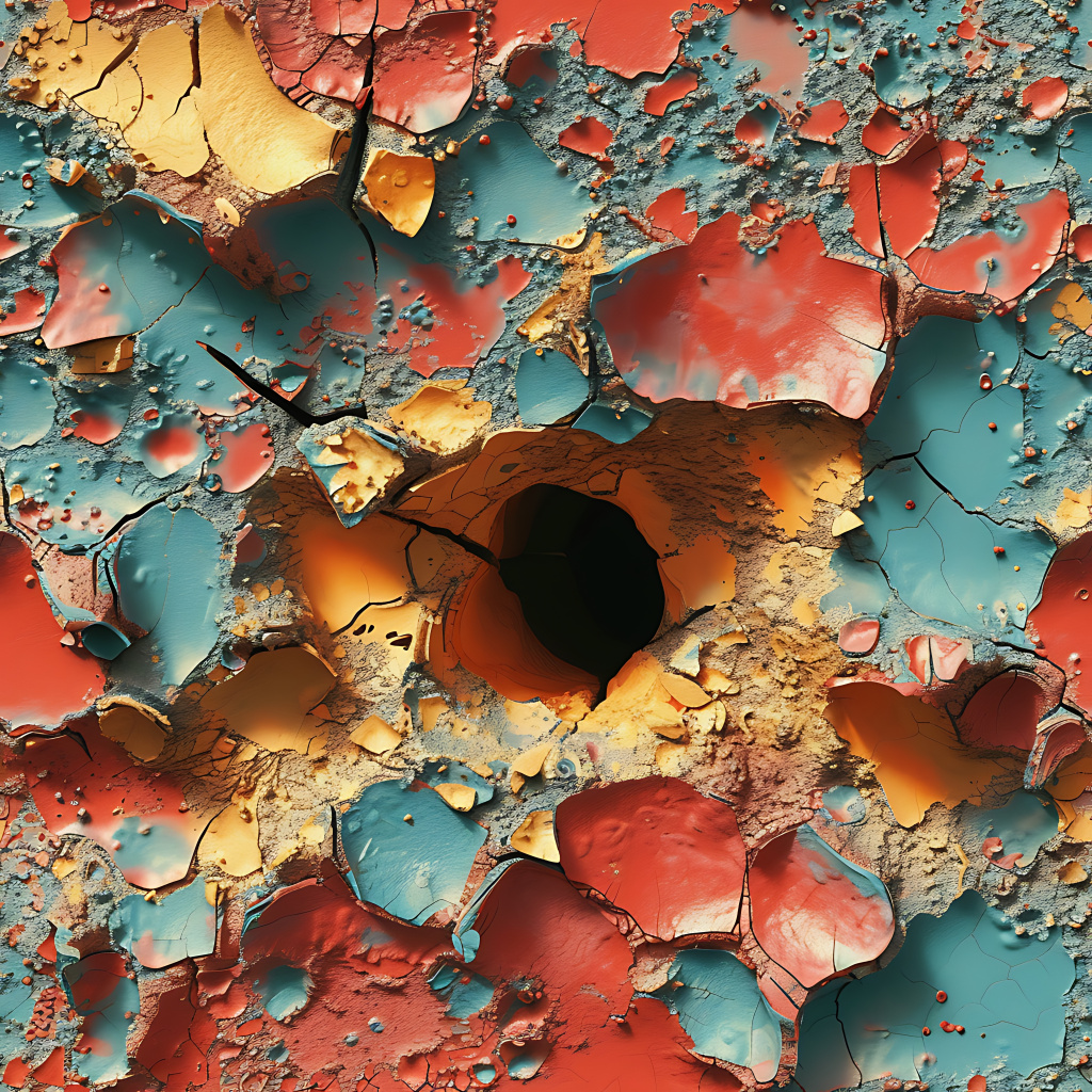 The Cracked & Holes collection captures fractured, chipped, perforated, and cavity-rich surfaces for believable wear and structural stress. You will find cracked concrete and asphalt, fractured stone and baked clay, peeling paint and plaster, broken and missing ceramic tiles, splintered wood, perforated/expanded metals and grilles, mesh sheets, torn fabric, ripped paper/cardboard, and parched soil/dry mud. Every texture is seamless/tileable and ready for a metal-rough PBR pipeline in Blender, Unreal Engine, and Unity.