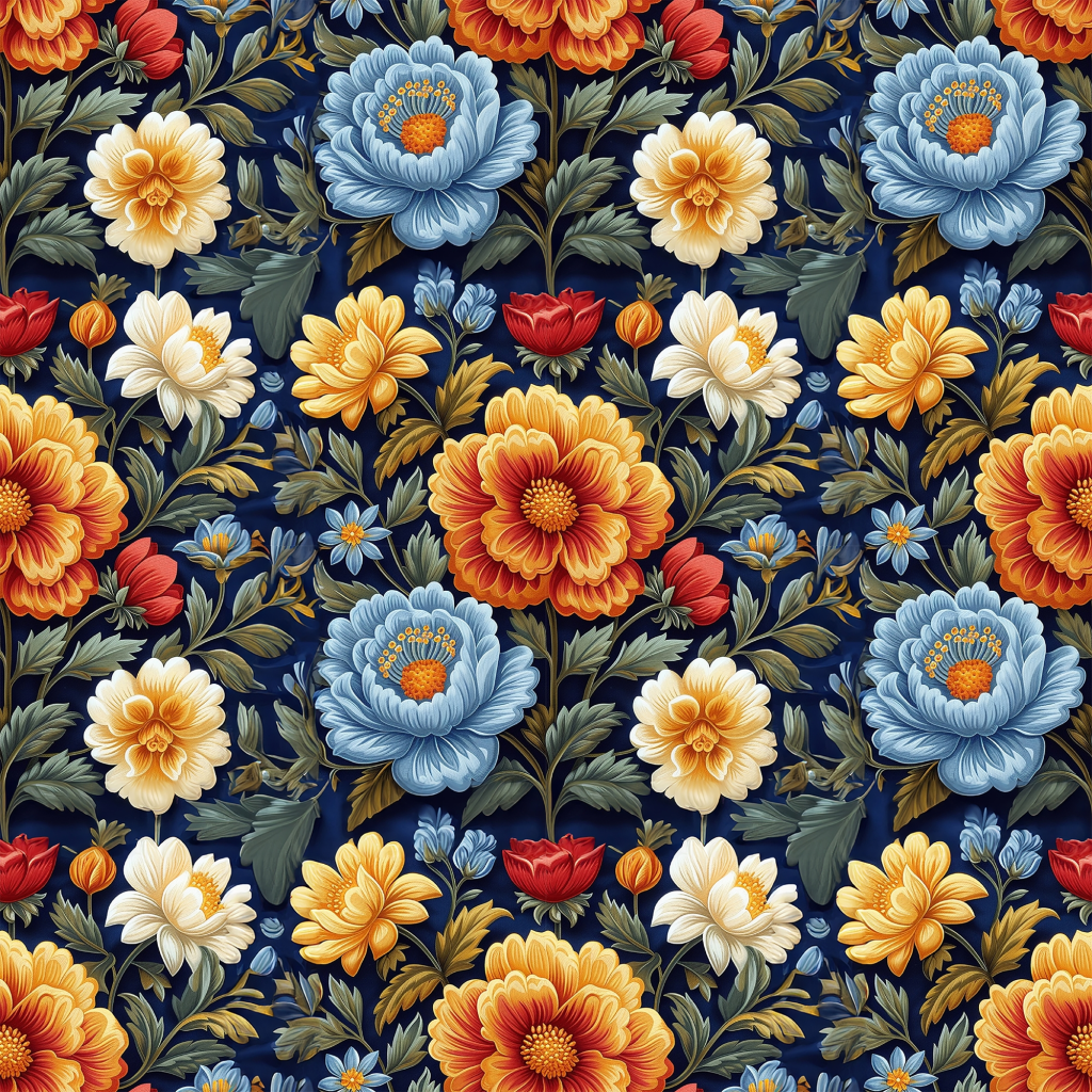 The Embroidered Floral collection delivers richly detailed fabrics where stitched petals, stems, and foliage create tactile relief and elegant sheen. Explore motifs worked on cotton/linen grounds, satin and silk, organza and tulle, and mesh/lace bases, finished with techniques such as satin stitch, chain stitch, seed stitch, French knots, couching, and appliqué. Select assets include cutwork/lace negatives and metallic threads for highlights. Every texture is seamless/tileable and prepared for a metal-rough PBR workflow, ready to drop into Blender, Unreal Engine, and Unity.