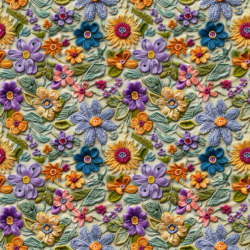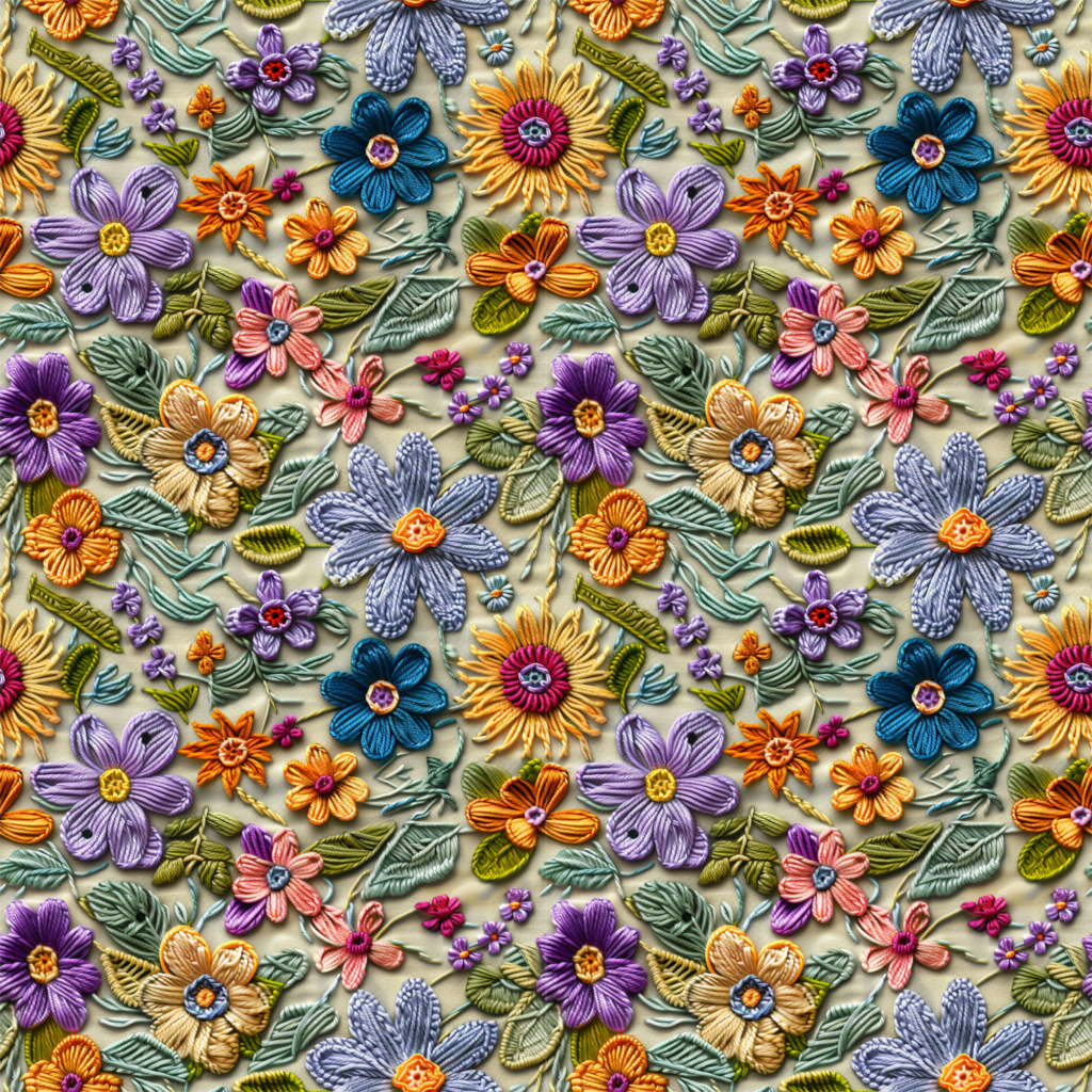 Embroidered Floral — Seamless PBR Textures (1K–8K)