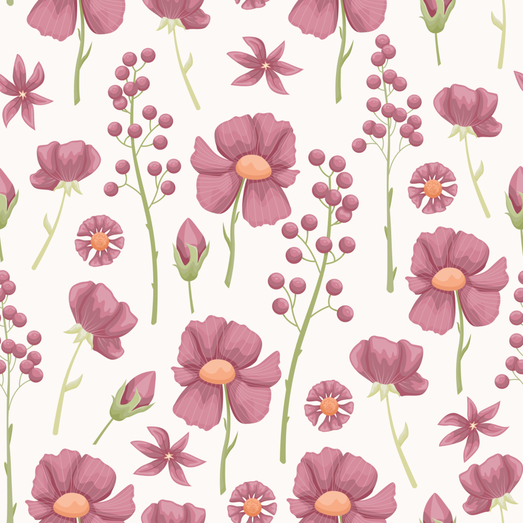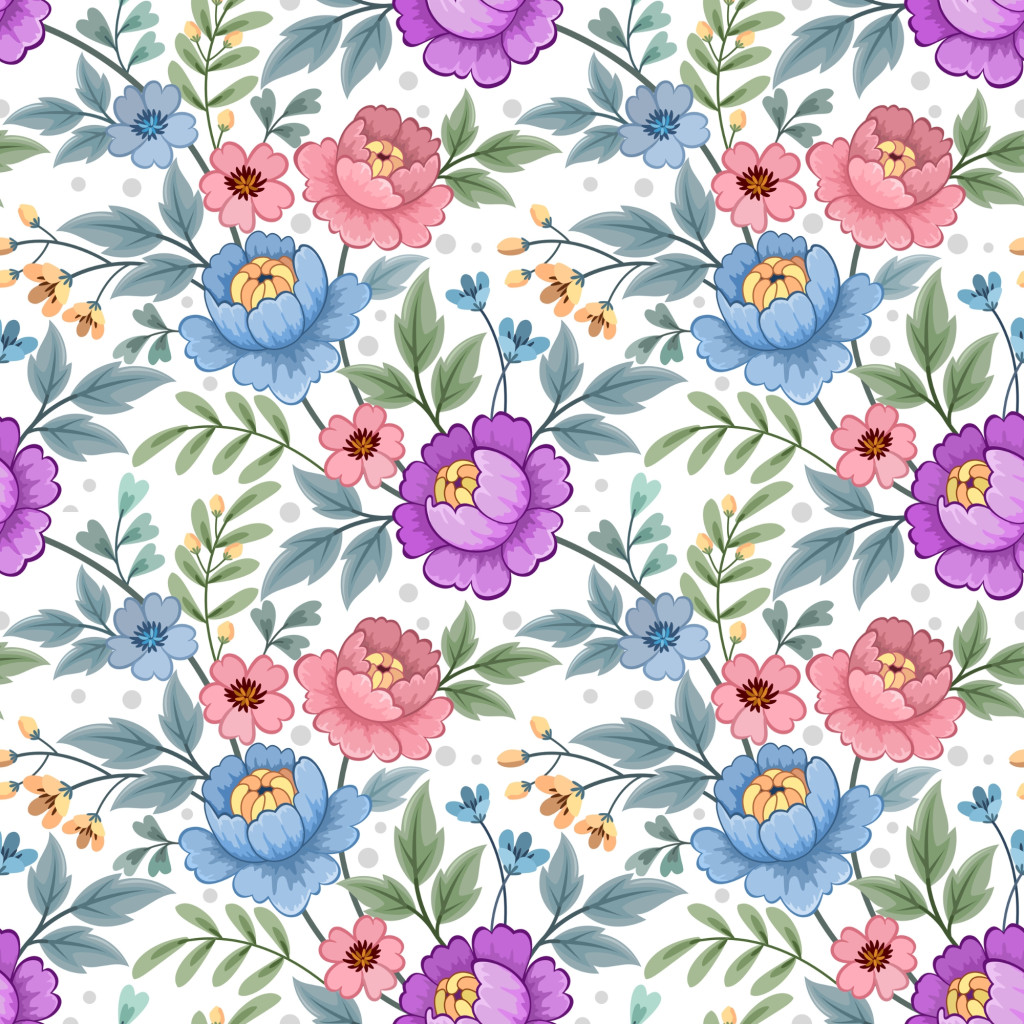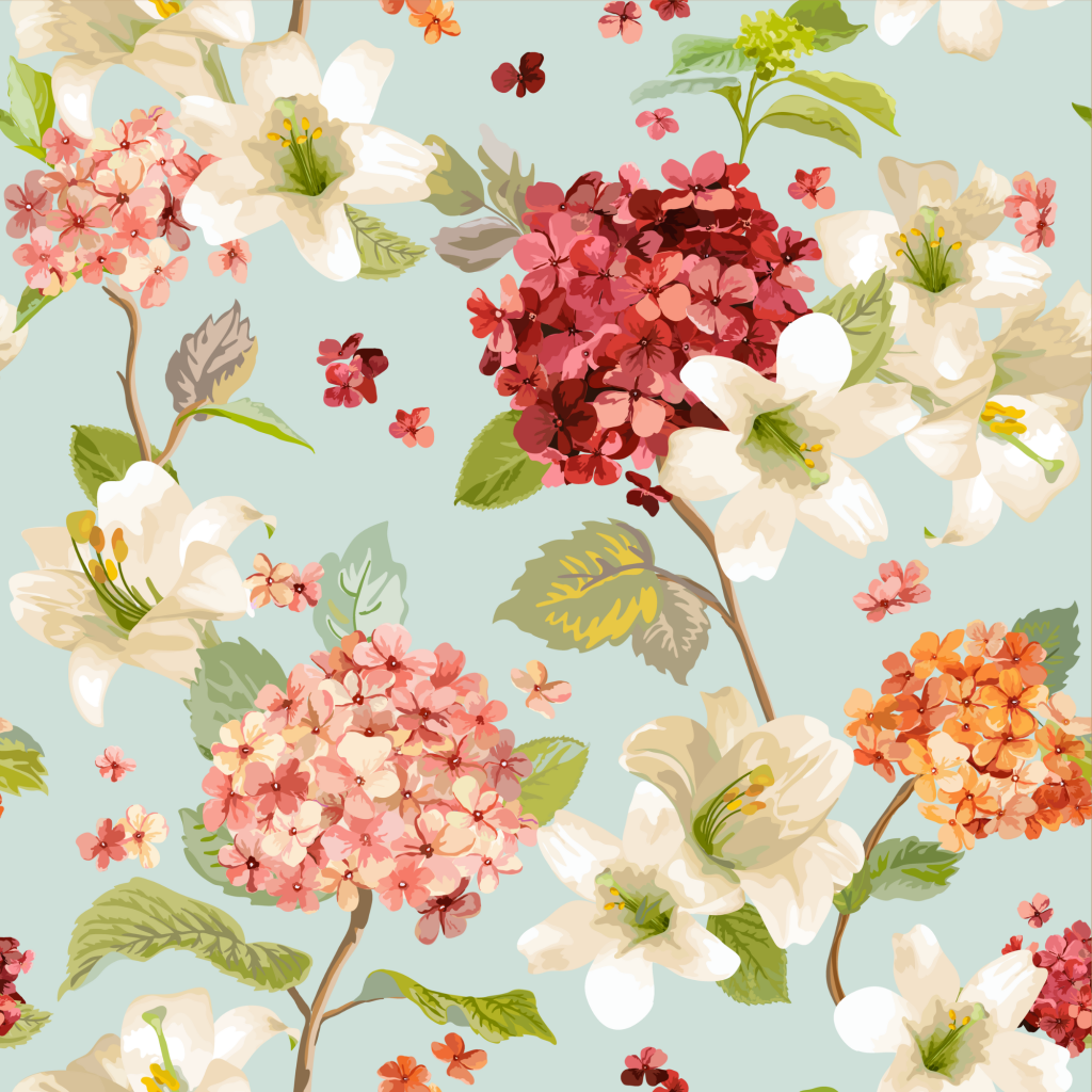 Keep real-world UV scale (e.g., small “ditsy” flowers 5–15 mm; large wallpaper blooms 80–250 mm; leaf widths 20–120 mm).