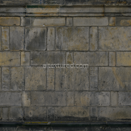 This Discolored Blocks Sandstone texture captures the natural complexity and weathered character of large sandstone blocks commonly found in urban outdoor environments. The base substrate is a sedimentary rock composed primarily of quartz and feldspar grains bound together by natural mineral cements creating a porous yet durable surface. Over time exposure to outdoor elements results in a distinctive grey and stained appearance with subtle discoloration and dirt accumulation adding authenticity to the stone’s surface. The texture simulates this intricate composition with physically based rendering (PBR) channels that replicate the stone’s mineral grain orientation porosity and surface finish contributing to a realistic portrayal of man-made sandstone walls and trimsheets in 3D scenes.
