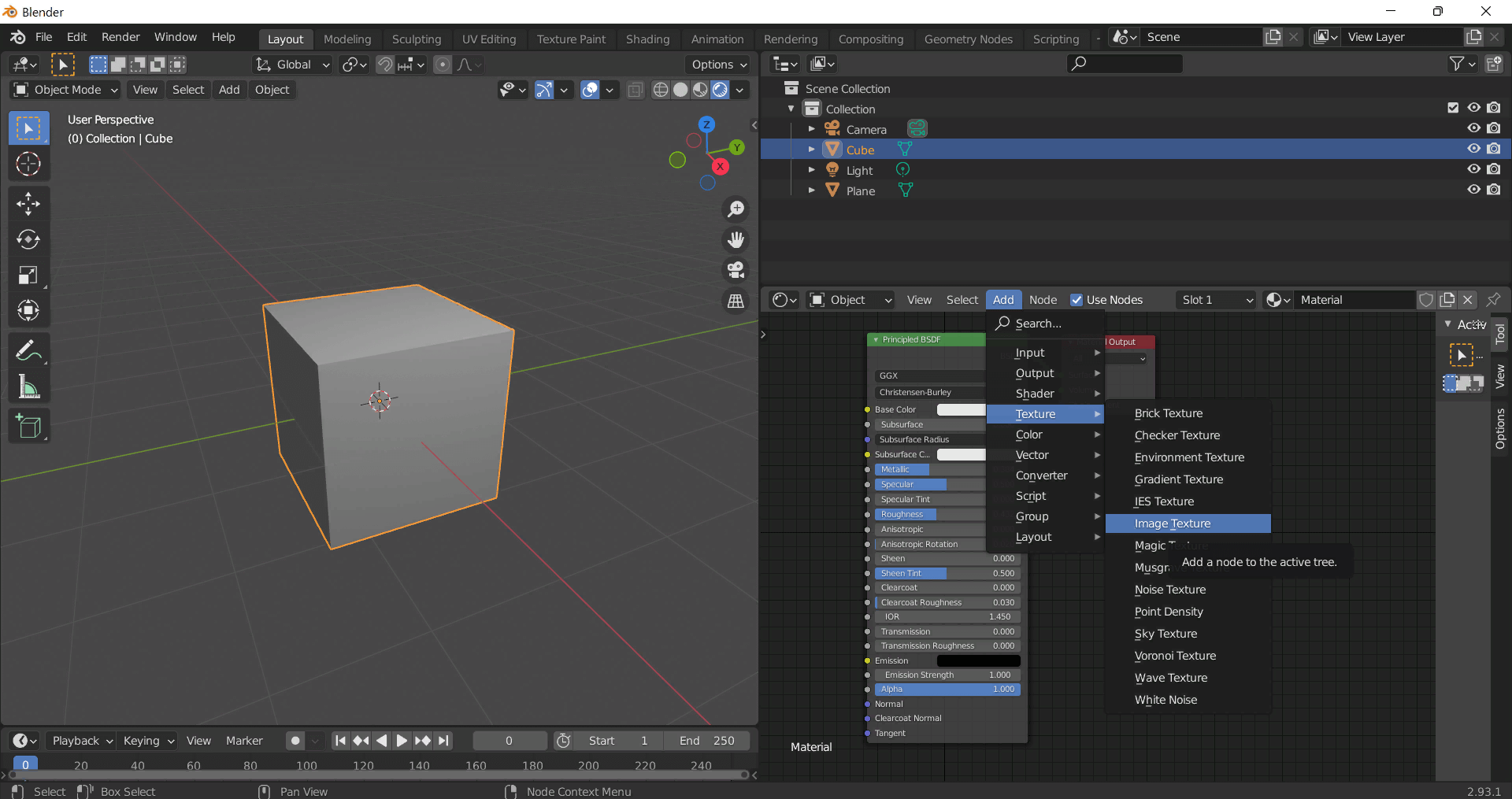 To add the downloaded texture, go to Add — Texture — Image Texture.