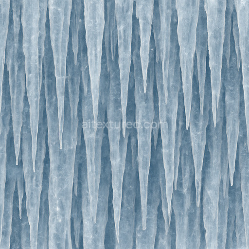 The icicles close up striations texture is a meticulously crafted, seamless snow-ice material that replicates the intricate surface composition of natural icicles with exceptional clarity and realism. At its core, this texture features a predominantly translucent ice substrate characterized by delicate mineral layers of frozen water crystals. These layers form elongated, fine linear striations that trace the surface of each icicle, creating a rich pattern of subtle grooves and micro-fissures. The surface finish balances between smooth, glassy translucency and faintly weathered frost, exhibiting slight internal refraction and micro-roughness that mimics the natural interplay of ice and accumulated frost. This combination of mineral composition and fine grain orientation imparts a polished yet organic appearance, capturing both the pristine and environmentally worn qualities typical of icicles in snow-ice environments.