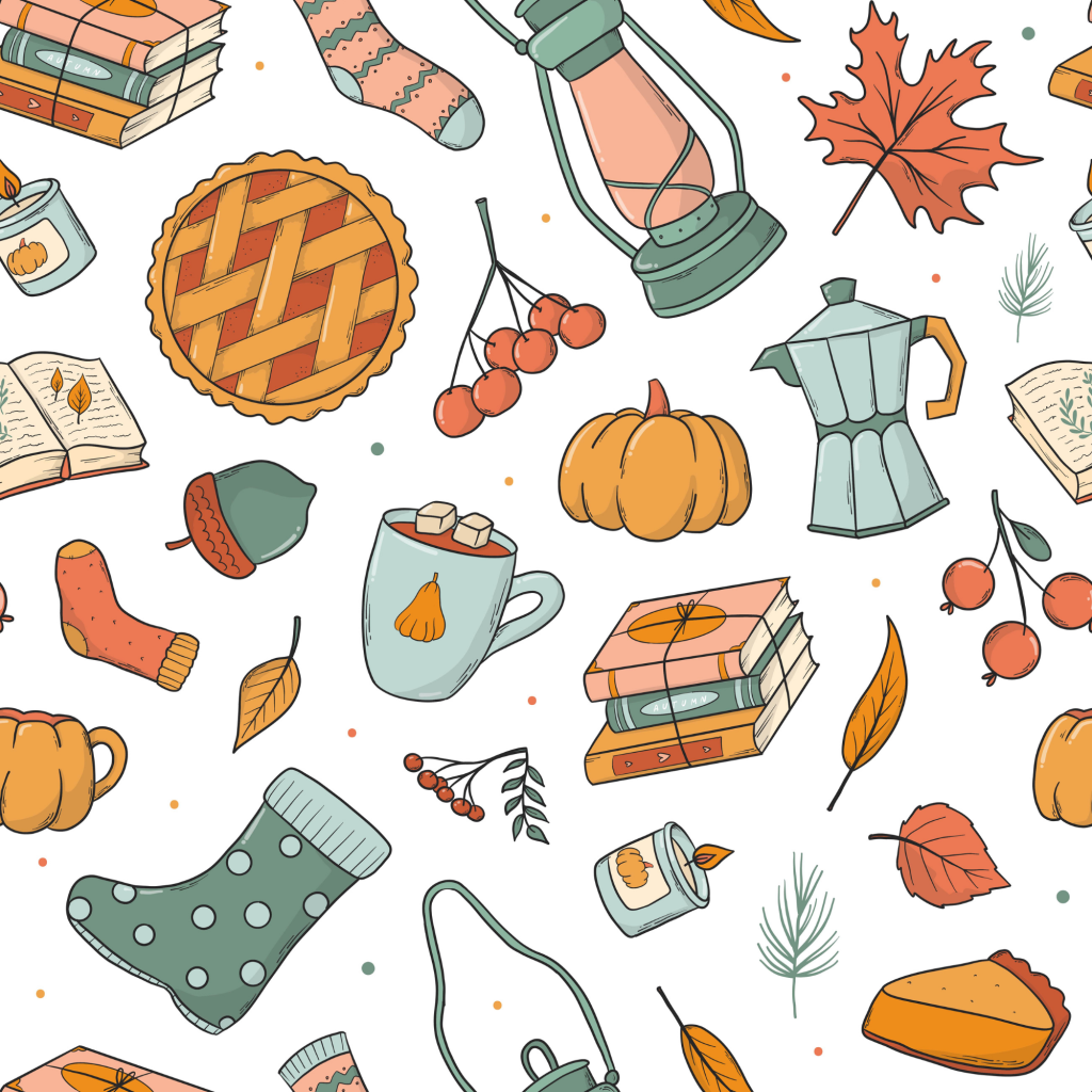 Grade toward a cohesive palette—pumpkin orange, cranberry, sage, wheat, walnut, brass—to unify props and backgrounds.